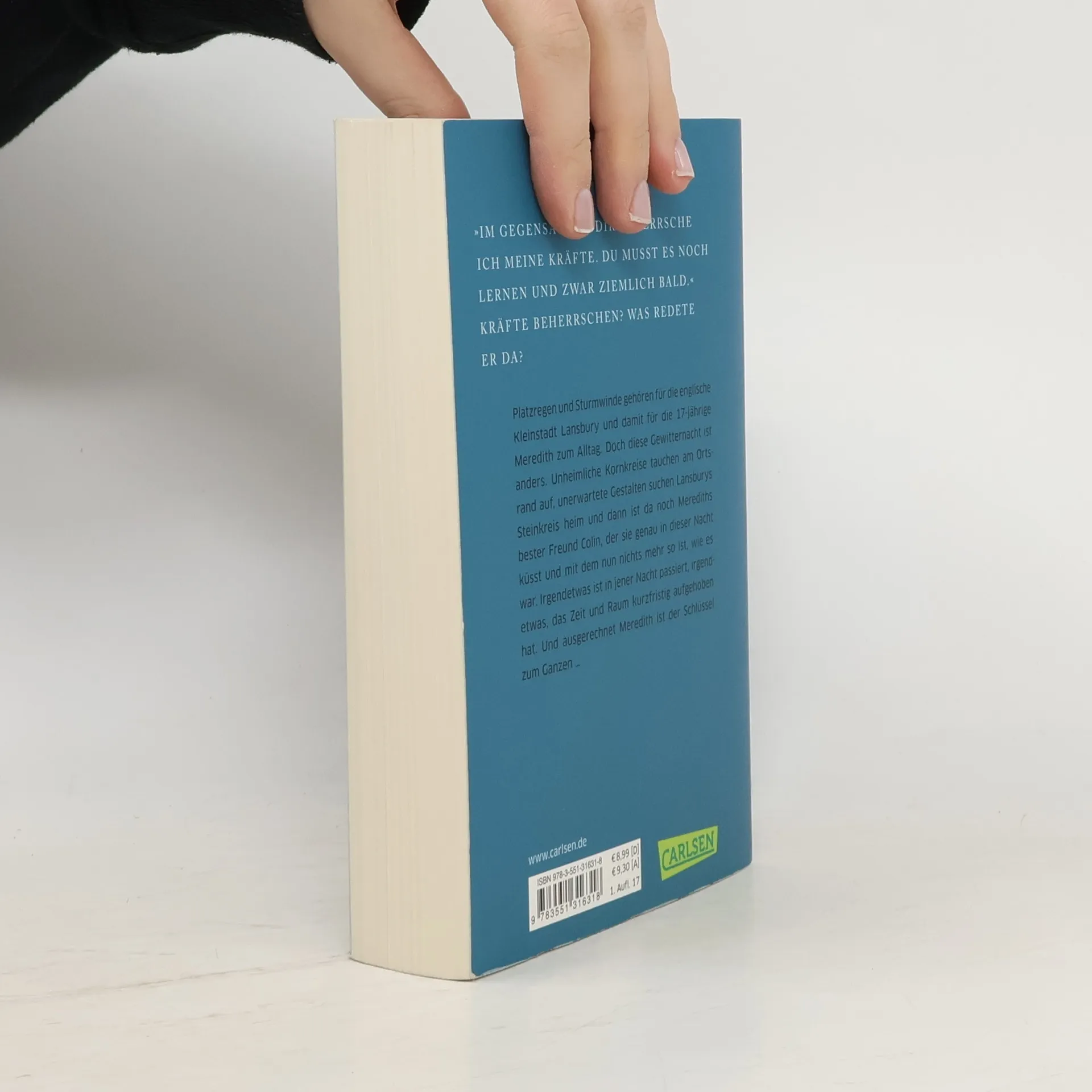 Platzregen und Sturmwinde gehören für die englische Kleinstadt Lansbury und damit für die 17-jährige Meredith zum Alltag. Doch diese Gewitternacht ist anders. Unheimliche Kornkreise tauchen am Ortsrand auf, unerwartete Gestalten suchen Lansburys Steinkreis heim und dann ist da noch Merediths bester Freund Colin, der sie genau in dieser Nacht küsst und mit dem nun nichts mehr so ist, wie es war. Irgendetwas ist in jener Nacht passiert, irgendetwas, das Zeit und Raum kurzfristig aufgehoben hat. Und ausgerechnet Meredith ist der Schlüssel zum Ganzen … //Alle Bände der Reihe: -- Zeitlos 1: Das Flüstern der Zeit -- Zeitlos 2: Die Wellen der Zeit -- Zeitlos 3: Die Flammen der Zeit// Die Zeitlos-Reihe ist abgeschlossen.
