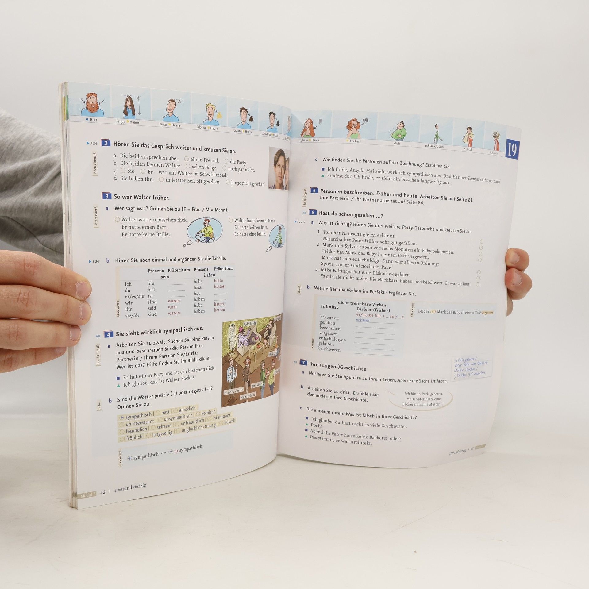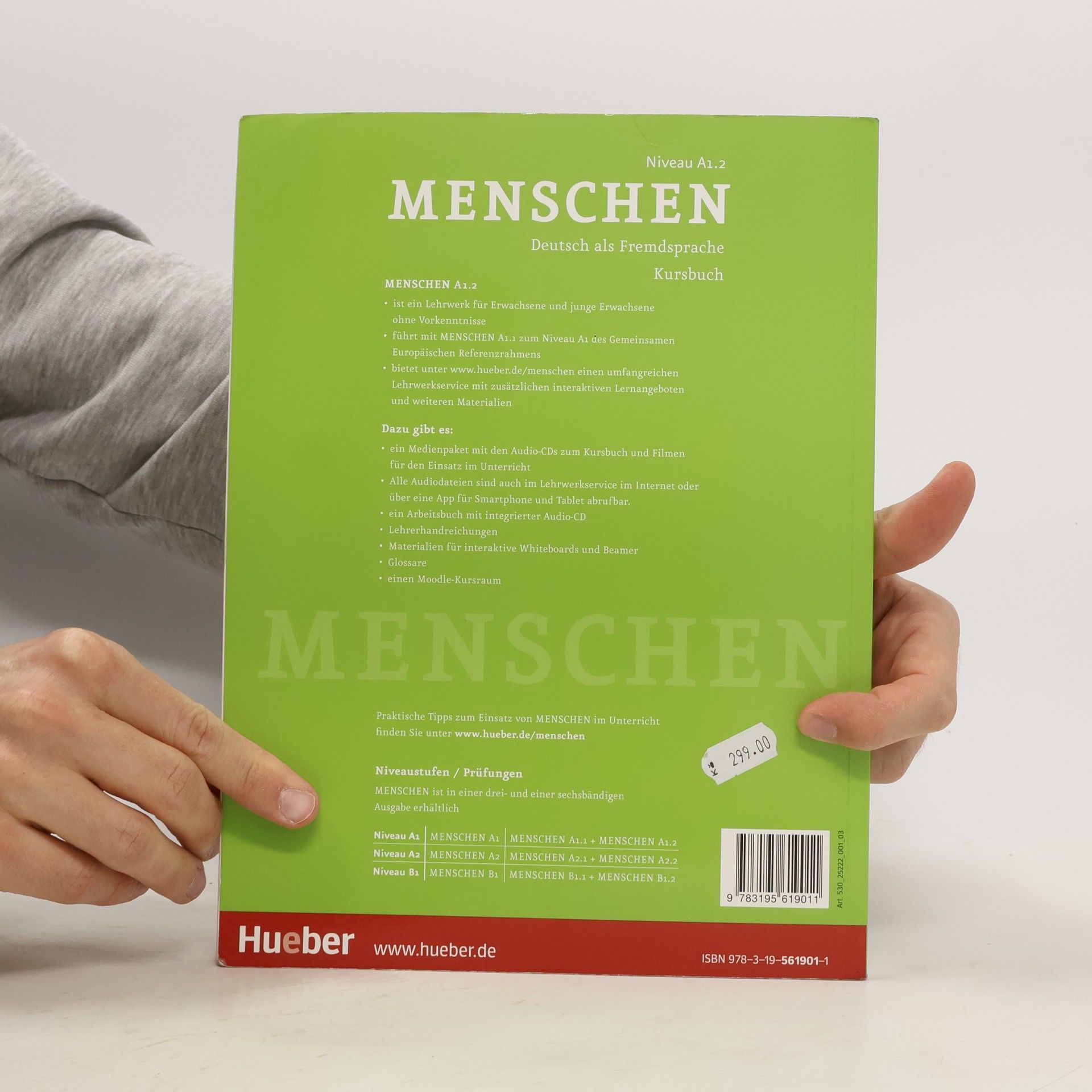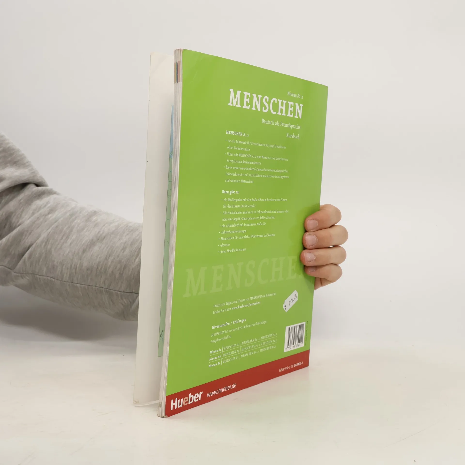 Zielniveau A1.2 Kursbuch der sechsbändigen Ausgabe mit Audios online Teilband Niveau A1.2 Zielgruppe: Erwachsene und Jugendliche ab 16 Jahren ohne Vorkenntnisse in Grundstufenkursen - die Lektionen umfassen je vier Seiten und folgen einem transparenten, wiederkehrenden Aufbau: - jede Lektion beginnt mit einer interessanten Einstiegssituation – meist mit einem Hörtext kombiniert –, die in die Thematik der Lektion einführt und Emotionen und Interesse weckt - auf der folgenden Doppelseite werden, ausgehend von der Einstiegssituation, die neuen Wortfelder, die Strukturen und Redemittel anhand von authentischen Lese- und Hörtexten eingeführt und geübt - das neue Wortfeld der Lektion wird in der Kopfzeile prominent und gut memorierbar als Bildlexikon präsentiert - Abschlussseite: Schreibtraining, Sprechtraining oder Mini-Projekte greifen den Lektionsstoff auf und die Strukturen und wichtigen Wendungen werden übersichtlich zusammengefasst - die vier zusätzlichen Modul-Plus-Seiten bieten weitere interessante Informationen: - Lesemagazin: Magazinseite mit vielfältigen zusätzlichen Lesetexten - Film-Stationen: Aufgaben zu den Filmsequenzen - Projekt Landeskunde: Anregung für ein Projekt - Ausklang: Lieder mit Tipps zum kreativen Einsatz im Unterricht - Die Audiodateien stehen als Download im Lehrwerkservice zur Verfügung oder können direkt in der kostenlosen AR-App abgespielt werden.