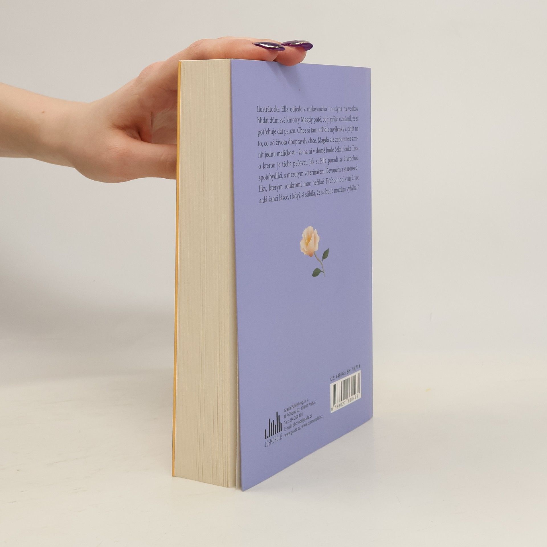 Ilustrátorka Ellla odjede z milovaného Londýna na venkov hlídat dům své kmotry Magdy poté, co jí přítel oznámil, že si potřebuje dát pauzu. Chce si tam utřídit myšlenky a přijít na to, co od života doopravdy chce. Magda ale zapomněla zmínit jednu maličkost – že na ni v domě bude čekat fenka Tess, o kterou je třeba pečovat. Jak si Ella poradí se čtyřnohou spolubydlící, s mrzutým veterinářem Devonem a starousedlíky, kterým soukromí moc neříká? Přehodnotí svůj život a dá šanci lásce, i když si slíbila, že se bude mužům vyhýbat?