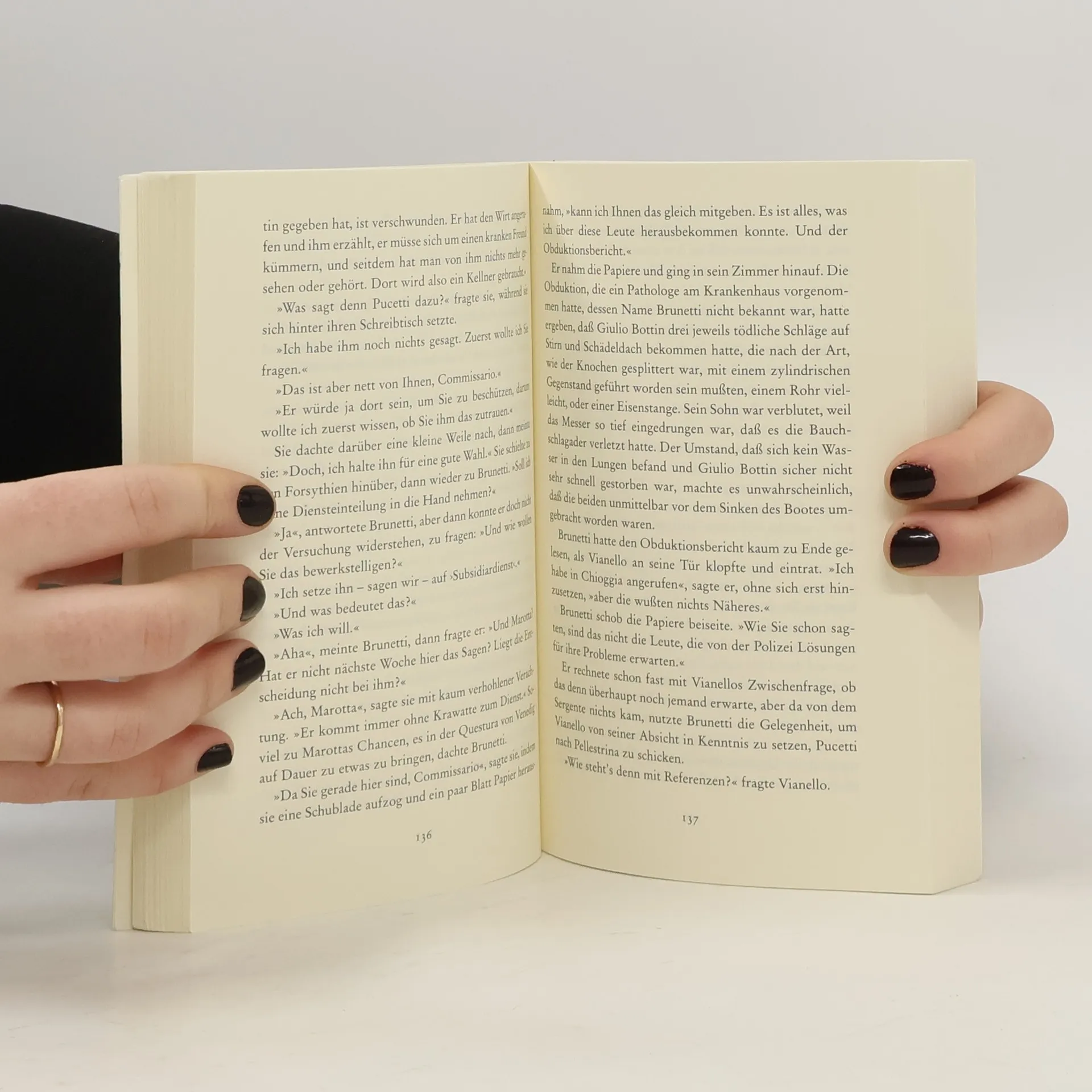 Nach dem Tod von zwei Fischern sind alle im Dorf so verschlossen wie verdorbene Vongole. Der Commissario gibt dennoch nicht auf. Den Amtsweg ist Brunetti noch nie gegangen, doch diesmal bringen seine Methoden die halbe Questura in Gefahr.