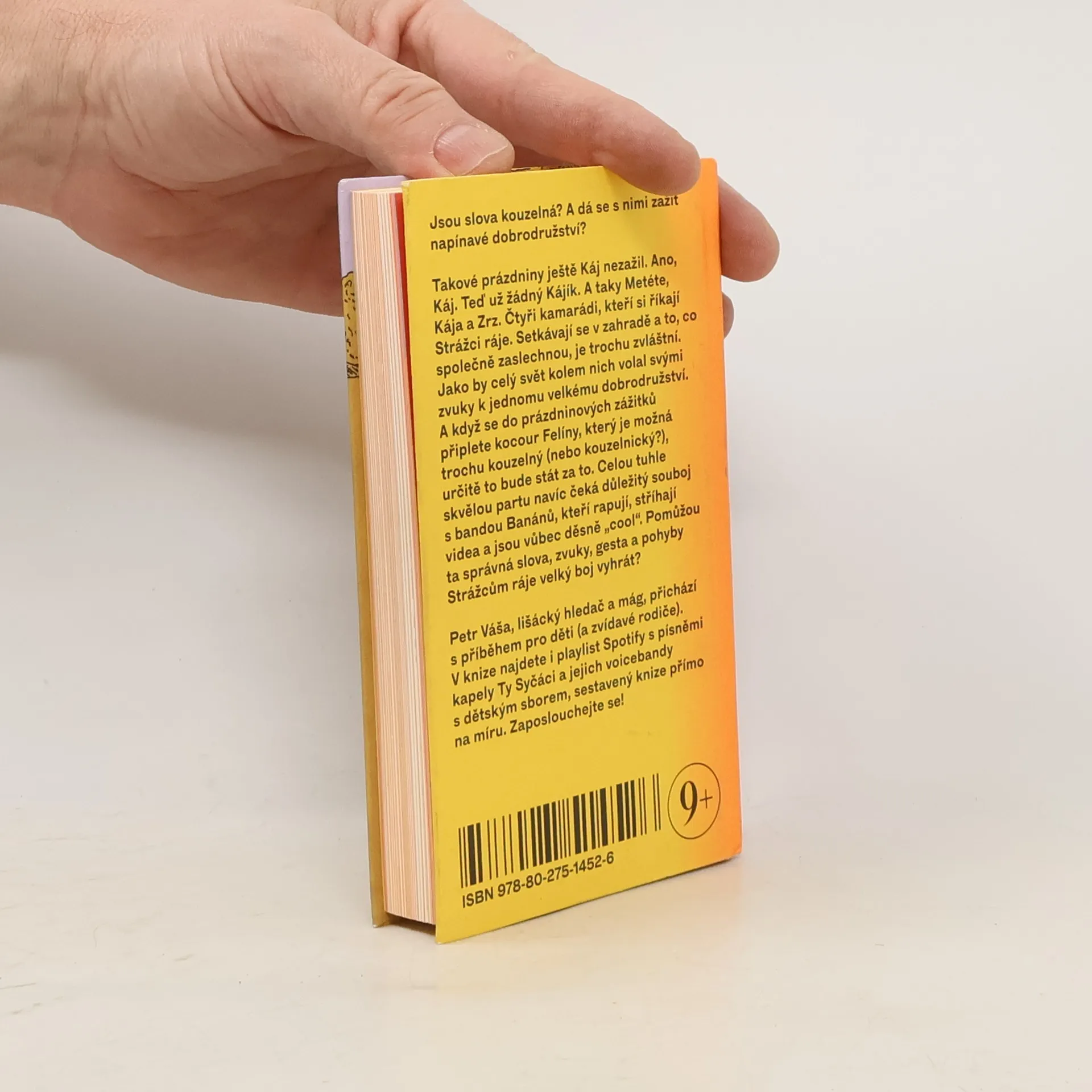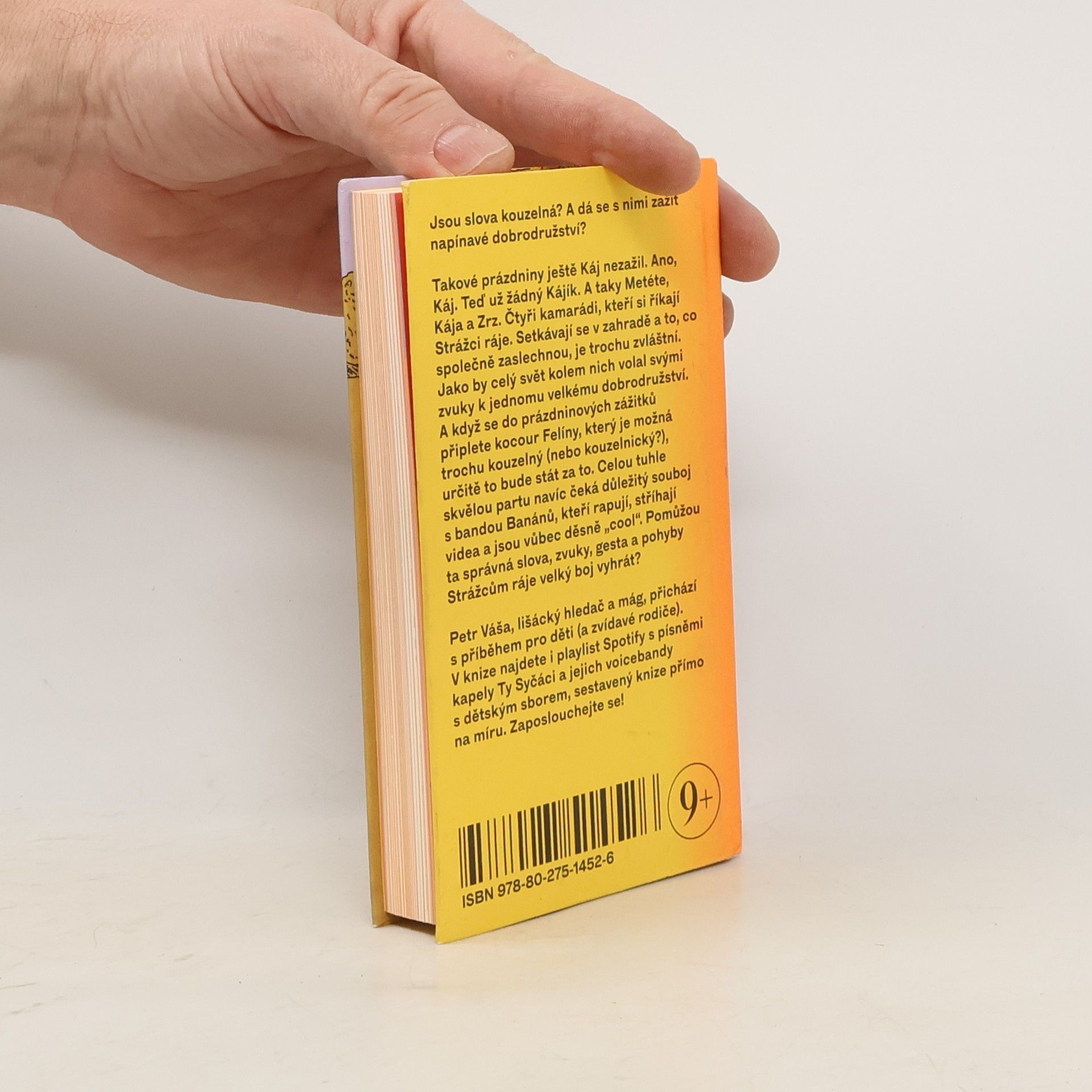 Jsou slova kouzelná? A dá se s nimi zažít napínavé dobrodružství? Takové prázdniny ještě Káj nezažil. Ano, Káj. Teď už žádný Kájík. A taky Metéte, Kája a Zrz. Čtyři kamarádi, kteří si říkají Strážci ráje. Setkávají se v zahradě a to, co společně zaslechnou, je trochu zvláštní. Jako by celý svět kolem nich volal svými zvuky k jednomu velkému dobrodružství. A když se do prázdninových zážitků připlete kocour Felíny, který je možná trochu kouzelný (nebo kouzelnický?), určitě to bude stát za to. Celou tuhle skvělou partu navíc čeká důležitý souboj s bandou Banánů, kteří rapují, stříhají videa a jsou vůbec děsně „cool“. Pomůžou ta správná slova, zvuky, gesta a pohyby Strážcům ráje velký boj vyhrát? Petr Váša, lišácký hledač a mág, přichází s příběhem pro děti (a zvídavé rodiče). V knize najdete i playlist Spotify s písněmi kapely Ty Syčáci a jejich voicebandy s dětským sborem, sestavený knize přímo na míru. Zaposlouchejte se!