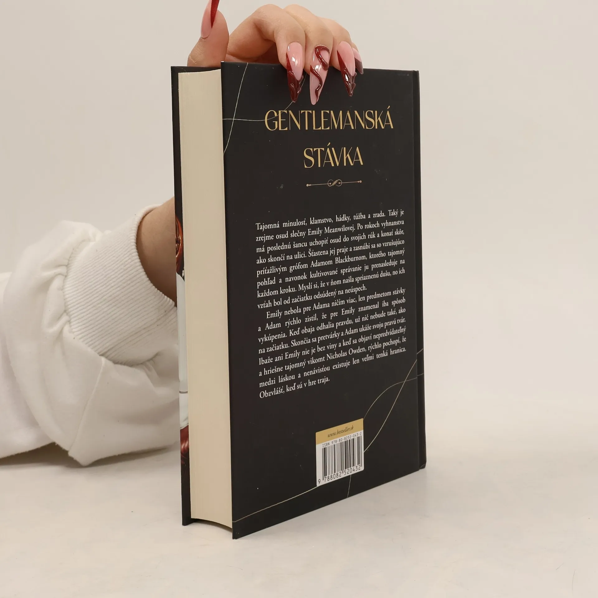 Tajomná minulosť, klamstvo, hádky, túžba a zrada. Taký je zrejme osud slečny Emily Meanwilovej. Po rokoch vyhnanstva má poslednú šancu uchopiť osud do svojich rúk a konať skôr, ako skončí na ulici. Šťastena jej praje a zasnúbi sa so vzrušujúco príťažlivým grófom Adamom Blackburnom, ktorého tajomný pohľad a navonok kultivované správanie ju prenasleduje na každom kroku. Myslí si, že v ňom našla spriaznenú dušu, no ich vzťah bol od začiatku odsúdený na neúspech.Emily nebola pre Adama ničím viac, len predmetom stávky a Adam rýchlo zistil, že pre Emily znamenal iba spôsob vykúpenia. Keď obaja odhalia pravdu, už nič nebude také, ako na začiatku. Skončia sa pretvárky a Adam ukáže svoju pravú tvár.Ibaže ani Emily nie je bez viny a keď sa objaví nepredvídateľný a hriešne tajomný vikomt Nicholas Owden, rýchlo pochopí, že medzi láskou a nenávisťou existuje len veľmi tenká hranica. Obzvlášť, keď sú v hre traja.
