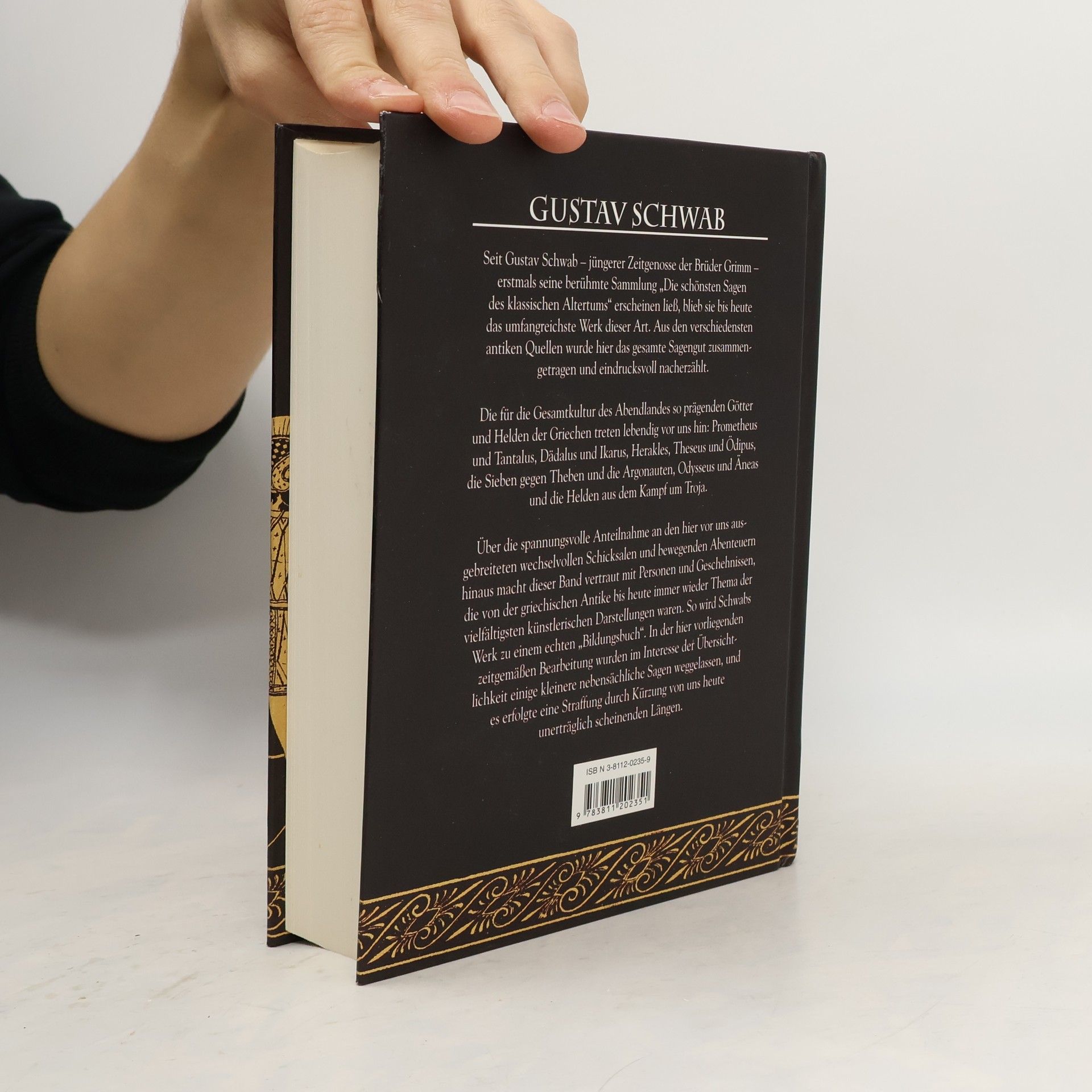 Der Stuttgarter Theologe Gustav Schwab (1792 – 1850) wurde durch das Buch der schönsten Geschichten und Sagen und durch die »Sagen des klassischen Altertums« weit über den Umkreis seiner schwäbischen Heimat hinaus bekannt. Er war ein Gönner und Förderer junger Dichter, stand mit Chamisso, Uhland, Kerner, aber auch mit Goethe und Tieck in Verbindung. Das Überragende seiner Sammlung besteht darin, daß er es vermochte, die gesamte antike Mythologie und Sagenwelt zu einem einheitlichen Ganzen zu verweben. Schwab hat die verschiedensten Quellen zusammengetragen und es ist ihm gelungen, aus Stoffen unterschiedlicher Herkunft eine gerundete und einprägsame Darstellung zu schaffen, die in dieser Art einzig ist. Schwabs Sammlung der griechischen Sagen hat seit ihrem ersten Erscheinen das Wissen über griechische Mythologie bereichert und unser Bild der Antike maßgeblich geprägt. Die »Sagen des klassischen Altertums« bieten noch immer einen einzigartigen Zugang zur Welt der Antike.