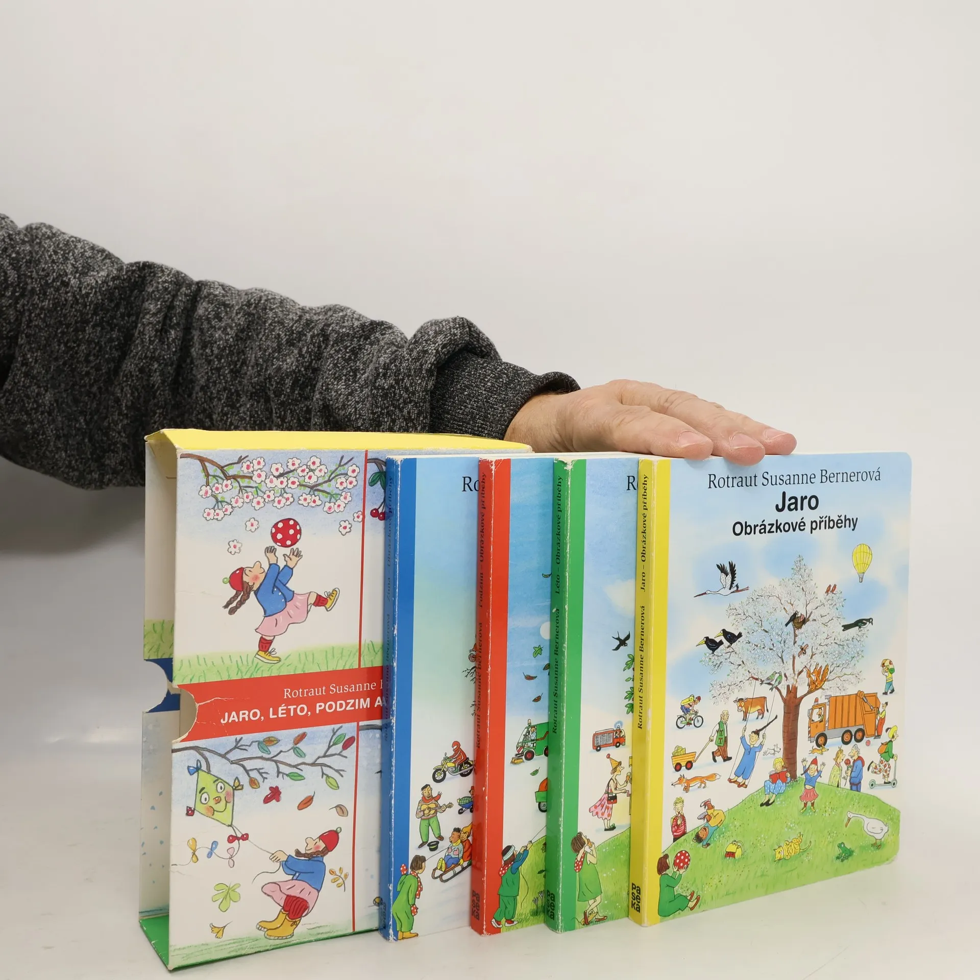Balení obsahuje menší verze knih Jaro, Léto, Podzim a Zima v jedné krabičce. Pokud chcete číst chronologicky, příběh začíná v díle Zima. Oblíbená série ročních období, které se jen v Česku prodalo přes sto tisíc výtisků, je tu konečně v praktickém formátu 15 na 19 centimetrů. Na cesty, k pískovišti, na chatu, do batůžku… Renomovaná autorka a ilustrátorka dětských knih Rotraut Susanne Bernerová vypráví jednoduchou řečí obrázků příběhy všedního dne, obratně a vtipně splétá dohromady drobné epizody. Malí čtenáři a malé čtenářky mohou v knížce hledat postavičky a zvířátka a sledovat, co dělají od první do poslední stránky. Kudy chodí teta Květa, kde si kluk Ondra bude hrát s kamarády, co dělá ve městě liška. Stávají se malými detektivy a zjišťují například, proč Pepa upadl, jak se dostal klobouk na strom, a luští mnoho dalších hádanek.