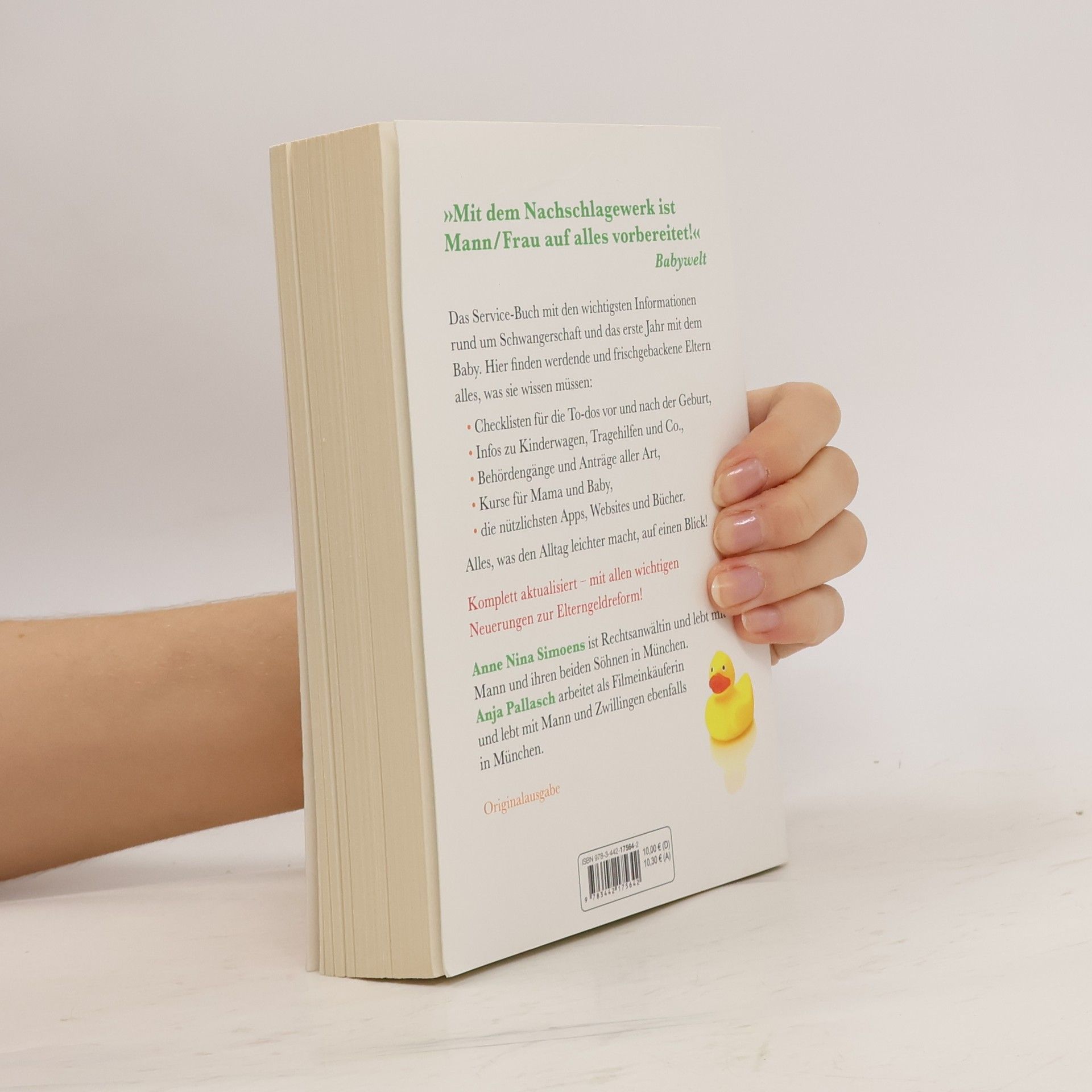 »Mit dem Nachschlagewerk ist Mann/Frau auf alles vorbereitet!« Babywelt Das erste Service-Buch mit den wichtigsten Informationen rund um Schwangerschaft und das erste Jahr mit dem Baby. Hier finden werdende und frischgebackene Eltern alles, was sie wissen müssen: Checklisten für die To-dos vor und nach der Geburt, Infos zum passenden Kinderwagen, Behördengänge aller Art (von Mutterschutz über Elternzeit bis Kindergeld), die nützlichsten Apps und Websites oder die besten Bücher – dieses einzigartige Nachschlagewerk versammelt alles, was den Alltag mit Baby leichter macht. Komplett aktualisiert – mit allen Infos zur Elterngeldreform und zu gesetzlichen Neuregelungen.