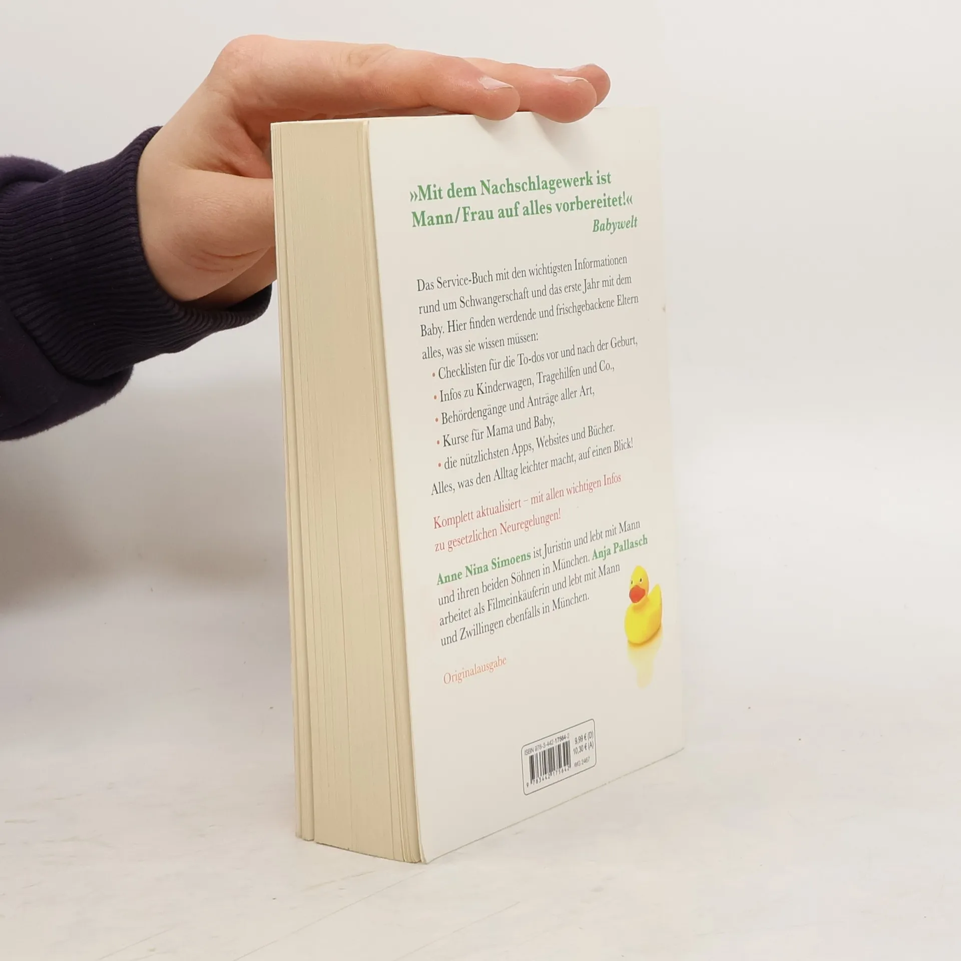 »Mit dem Nachschlagewerk ist Mann/Frau auf alles vorbereitet!« Babywelt Das erste Service-Buch mit den wichtigsten Informationen rund um Schwangerschaft und das erste Jahr mit dem Baby. Hier finden werdende und frischgebackene Eltern alles, was sie wissen müssen: Checklisten für die To-dos vor und nach der Geburt, Infos zum passenden Kinderwagen, Behördengänge aller Art (von Mutterschutz über Elternzeit bis Kindergeld), die nützlichsten Apps und Websites oder die besten Bücher – dieses einzigartige Nachschlagewerk versammelt alles, was den Alltag mit Baby leichter macht. Komplett aktualisiert – mit allen Infos zur Elterngeldreform und zu gesetzlichen Neuregelungen.