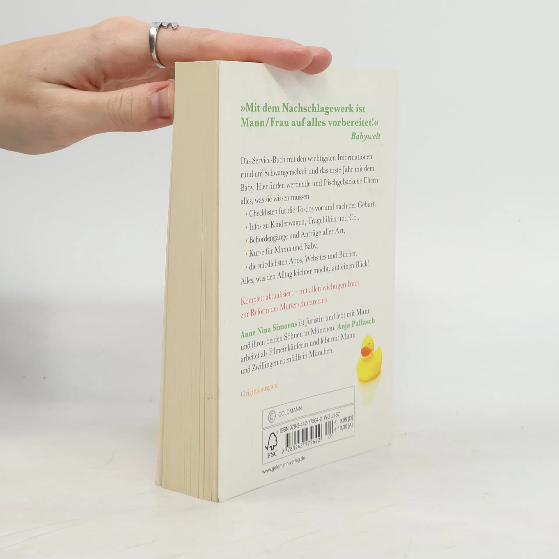 »Mit dem Nachschlagewerk ist Mann/Frau auf alles vorbereitet!« Babywelt Das erste Service-Buch mit den wichtigsten Informationen rund um Schwangerschaft und das erste Jahr mit dem Baby. Hier finden werdende und frischgebackene Eltern alles, was sie wissen müssen: Checklisten für die To-dos vor und nach der Geburt, Infos zum passenden Kinderwagen, Behördengänge aller Art (von Mutterschutz über Elternzeit bis Kindergeld), die nützlichsten Apps und Websites oder die besten Bücher – dieses einzigartige Nachschlagewerk versammelt alles, was den Alltag mit Baby leichter macht. Komplett aktualisiert – mit allen Infos zur Elterngeldreform und zu gesetzlichen Neuregelungen.