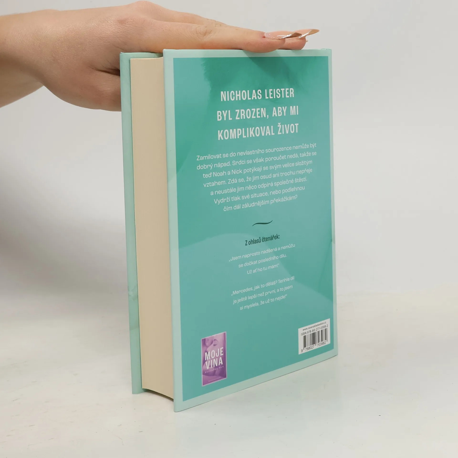Kniha Tvoje vina, druhý díl romantické trilogie Viníci od Mercedes Ron o drsňákovi s velkým srdcem a hodné dívce s velkou odvahou, obsahuje ještě víc romantiky, zrady a záhad.Když se Noah zamilovala do Nicka, věděla, že jejich vztah nebude snadný: jsou protikladní jako oheň a voda a když jsou spolu, létají nebezpečné jiskry... naprosto ve všech směrech.Dosud byla jejich vášeň ještě silnější než jejich hrdost, ale věkový rozdíl, vysoká škola, večírky, rodiče a stíny z minulosti, které oba pronásledují, je znovu a znovu zkoušejí jako časovaná bomba, která hrozí výbuchem.Je Noah opravdu připravena čelit svému strachu a znovu někomu důvěřovat?Dokáže se Nicholas oprostit od své minulosti a otevřít své srdce jedné jediné osobě?