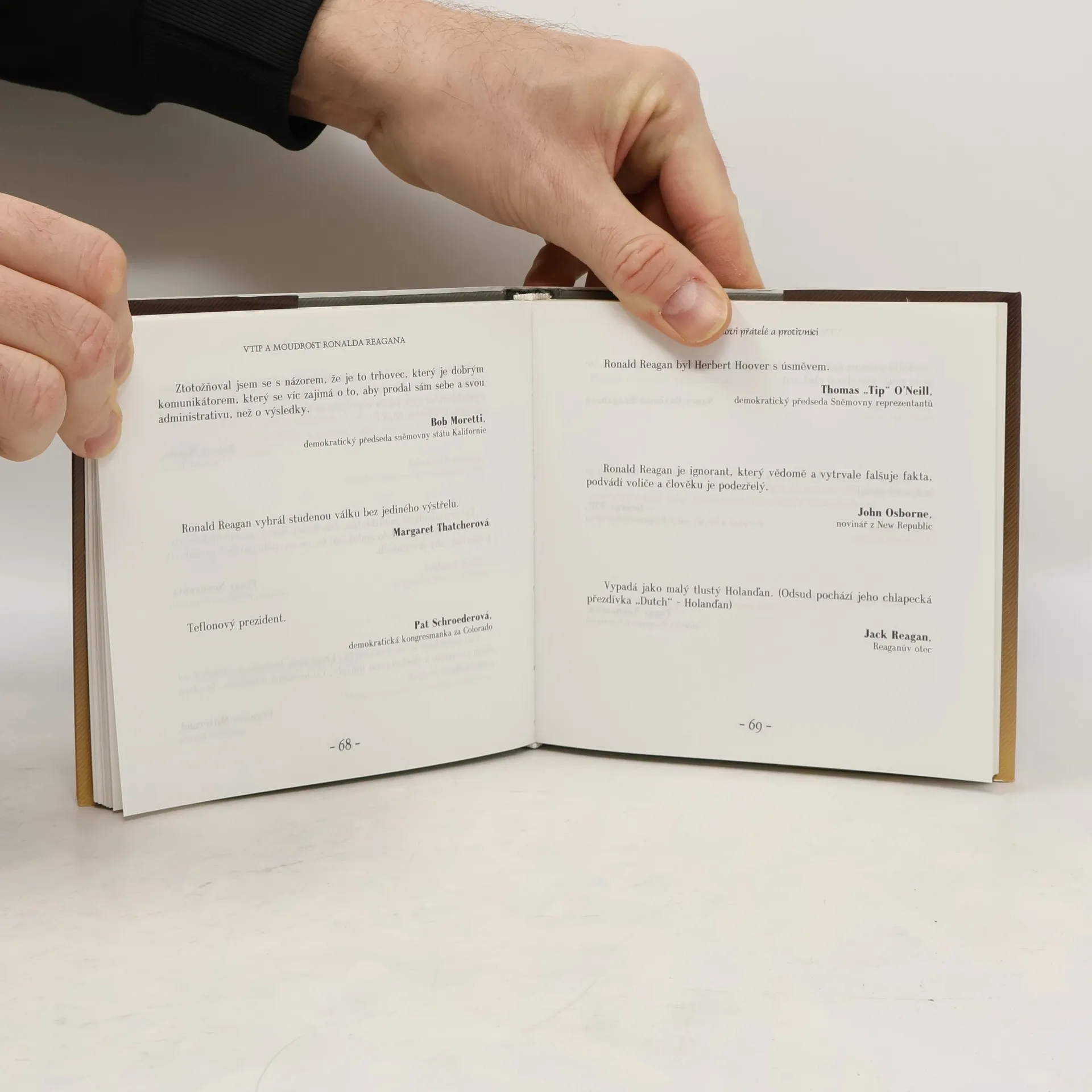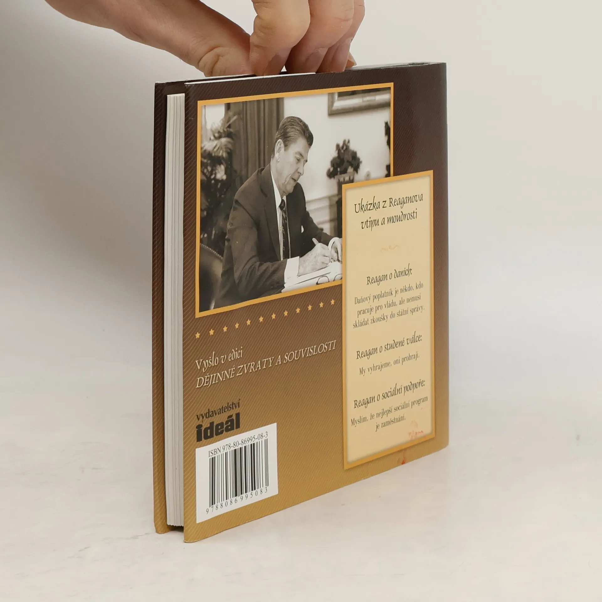 Ronald Reagan je něčím víc než oblíbeným a uctívaným prezidentem – pro miliony lidí je hrdinou, je milován jako charismatický vůdce, který více než kterýkoli jiný moderní prezident inspiroval Ameriku a ovlivnil budoucnost. Díky svému daru prostého porozumění, který pramenil z jeho neobvyklé dráhy herce, sportovního komentátora a vůdce odborů, se Reagan stal nejcitovanějším americkým prezidentem. V knize Vtip a moudrost Ronalda Reagana spisovatel James C. Humes sesbíral to nejlepší z postřehů a názorů „Velkého komunikátora.“ Tato sbírka bonmotů, anekdot, hlášek a málo známých historek obsahuje navíc charakteristiky Reagana očima jeho přátel i protivníků a rozbory jeho slavných projevů. Vtip a moudrost Ronalda Reagana je výjimečnou poctou zbožňovanému čtyřicátému prezidentovi Spojených států.