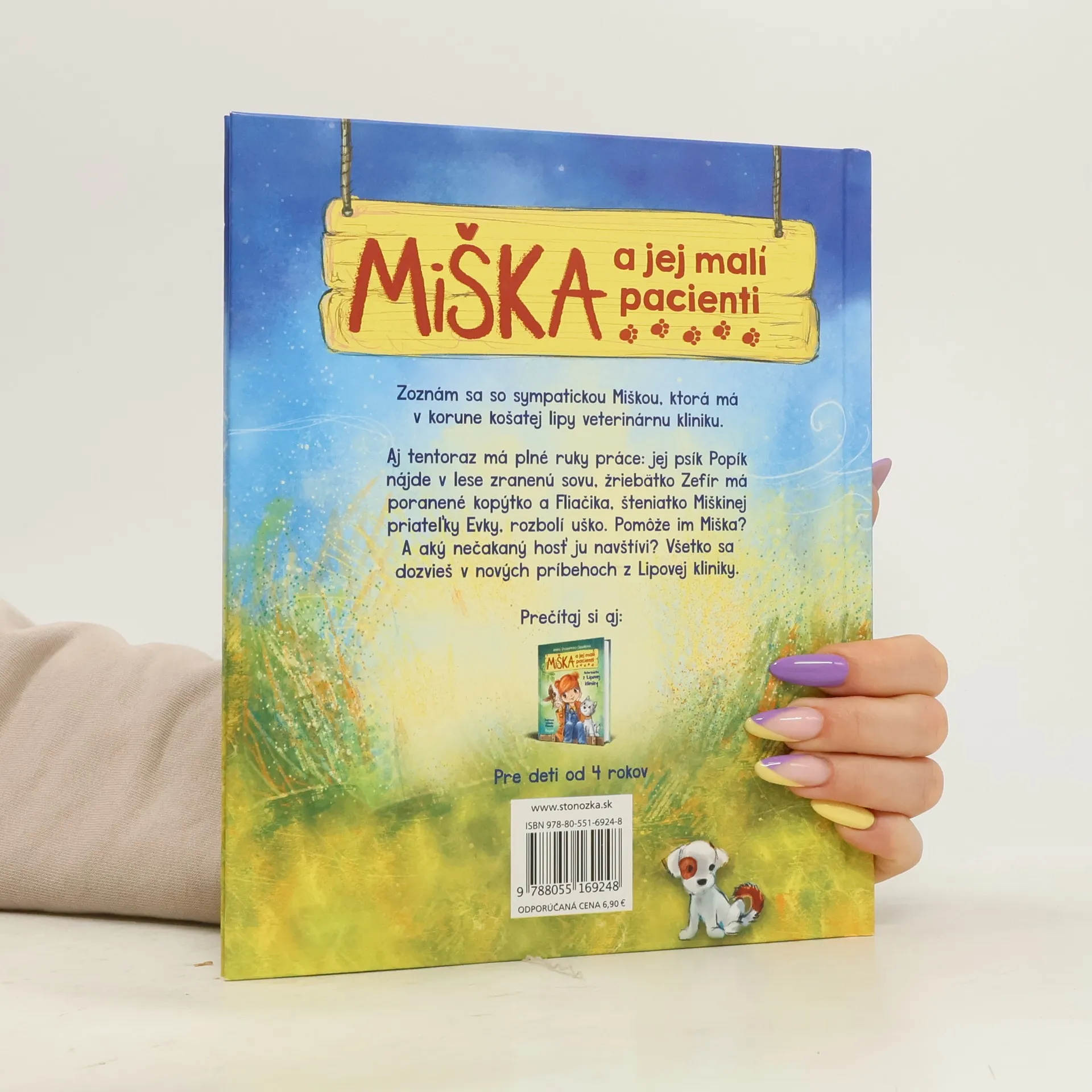 Zoznám sa so sympatickou sedemročnou Miškou, ktorá má v domčeku v korune košatej lipy veterinárnu kliniku. Má totiž neobyčajný dar – rozumie zvieratkám. Vďaka tomu presne vie, čo jej pacientov trápi. Pomáha jej aj najlepší priateľ – psík Popík. Aj tentoraz má veterinárka Miška plné ruky práce: Popík nájde v lese zranenú sovu, žriebätko Zefír má poranené kopýtko a Fliačika, šteniatko Miškinej priateľky Evky, rozbolí uško. Pomôže im Miška? A aký nečakaný hosť ju navštívi? Všetko sa dozvieš v nových príbehoch z Lipovej kliniky. Pre deti od 4 rokov Z poľského originálu Misia i jej mali pacjenci. Niespodziewani goście (Wydawnictwo Zielona Sowa, Warszawa 2017) preložila Silvia Kaščáková.