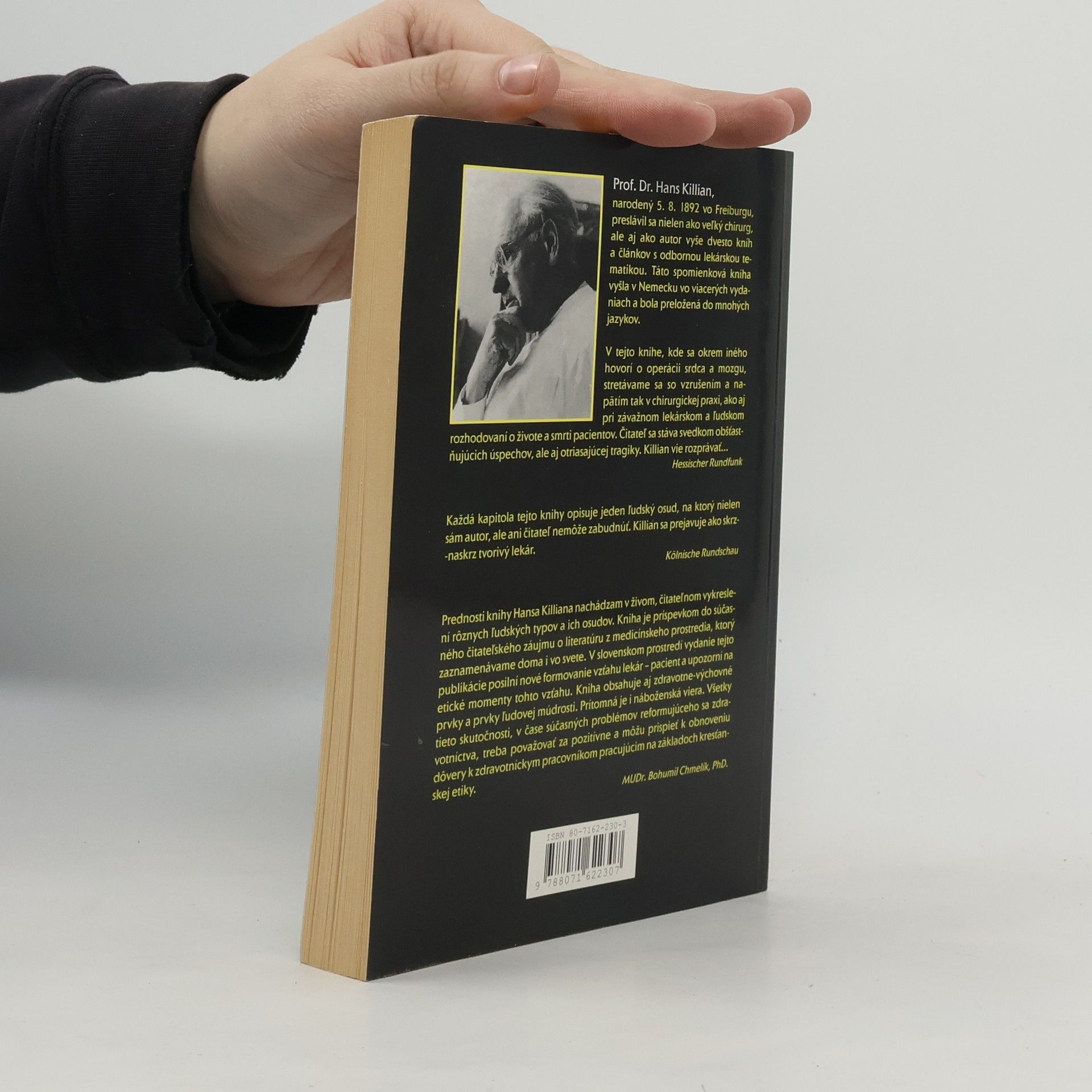 V tejto knihe, kde sa okrem iného hovorí o operácii mozgu a srdca, stretávame sa so vzrušením a napätím tak v chirurgickej praxi, ako aj pri závažnom lekárskom a ľudskom rozhodnutí o živote a smrti pacientov. Čitateľ sa stáva svedkom obšťastňujúcich udalostí, ale aj otriasajúcej tragiky. Killian vie jednoducho rozprávať..