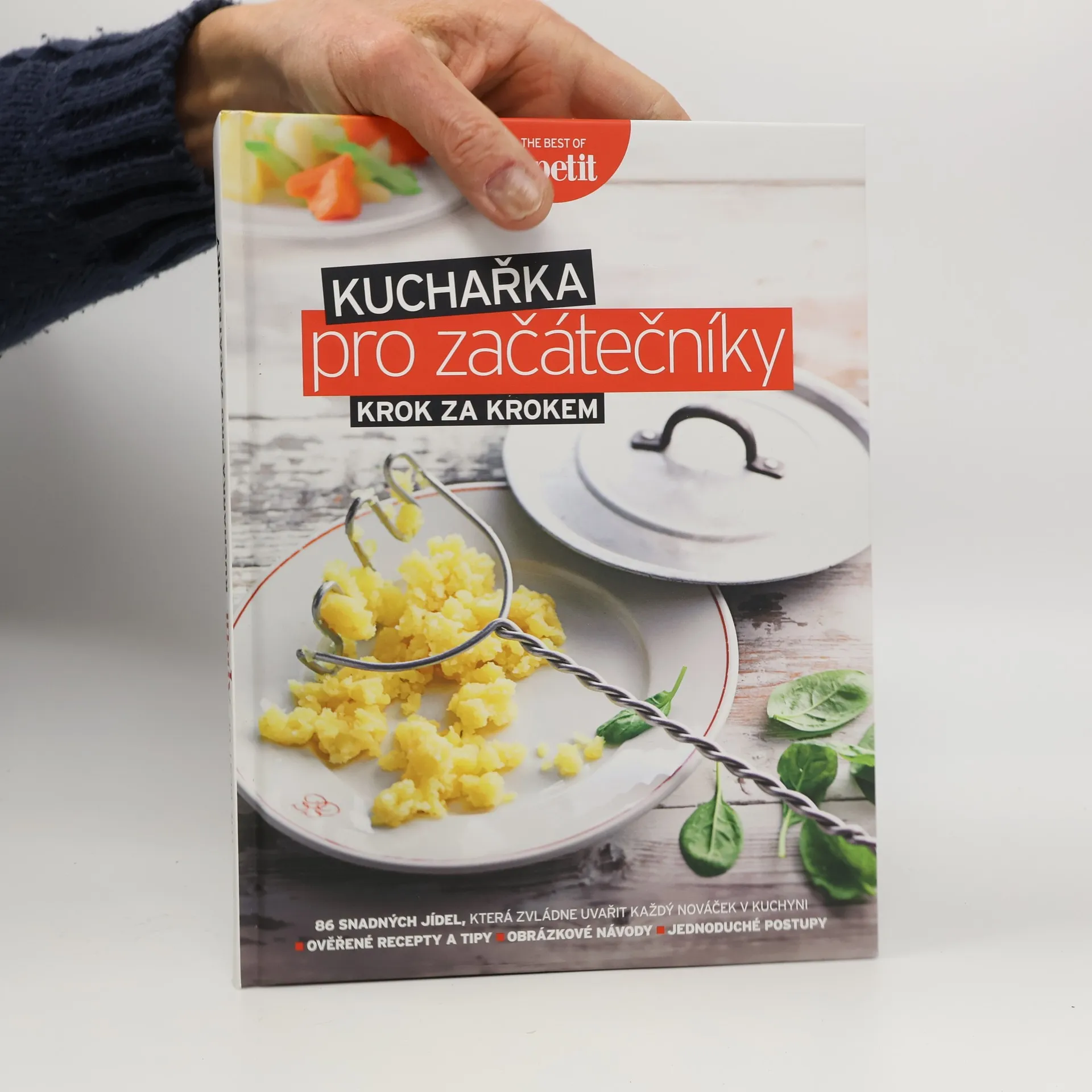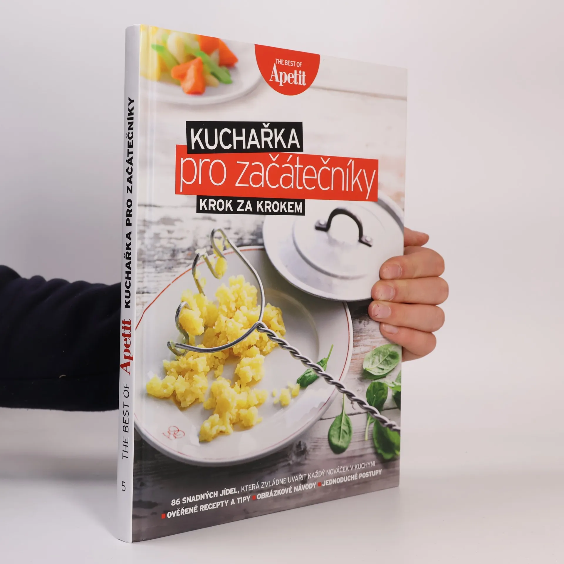 Chcete se naučit vařit nebo zlepšit své dovednosti v kuchyni? Nová kniha od Apetitu vás provede přípravou oblíbených jídel s jasně napsanými recepty, které zvládne opravdu každý. Je ideální pro začátečníky, ale i pro ty, kteří mají nějaké zkušenosti, ale stále se necítí jistě. Naučíte se vařit od vajec Benedikt přes domácí vývar, svíčkovou, hovězí cheeseburger až po kynuté koláče a narozeninový dort. Kde by nováček mohl tápat, najdete obrázkové návody krok za krokem, které usnadní přípravu. Kniha je plná praktických tipů a triků, které vám pomohou získat potřebnou jistotu v kuchyni. Dozvíte se také, jaké základní kuchyňské vybavení a suroviny byste měli mít vždy po ruce, a najdete užitečné informace o skladování potravin, hygieně a organizaci v kuchyni. Obsahuje kapitoly jako Servis, Malá jídla, Polévky, Z domova, Ze světa a Dezerty, které pokrývají široké spektrum pokrmů a technik. Tato kuchařka je skvělým pomocníkem pro každého, kdo chce vařit s radostí a sebevědomím.