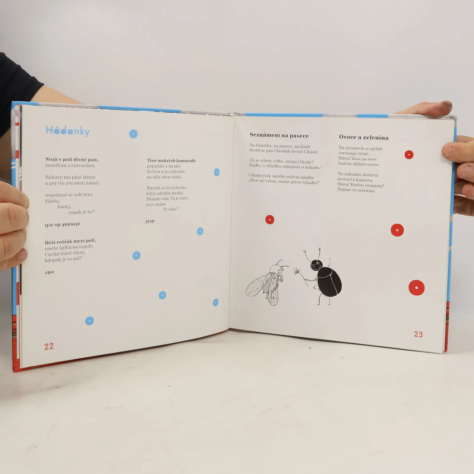 To nejlepší z dětské poezie talentovaného básníka Radka Malého: verše ze svého dnes již proslulého slabikáře a dalších čítanek a učebniček pro děti vybral sám autor a k tomu přidal řadu krásné nové lyriky. S dívčí něhou a přitom s humorem poezii ilustrovala malířka Anna Neborová a klučičí prvek v podobě písma ze stavebnice Merkur přičinil typograf Marek Pistora podepsaný také pod nápaditým designem této knihy