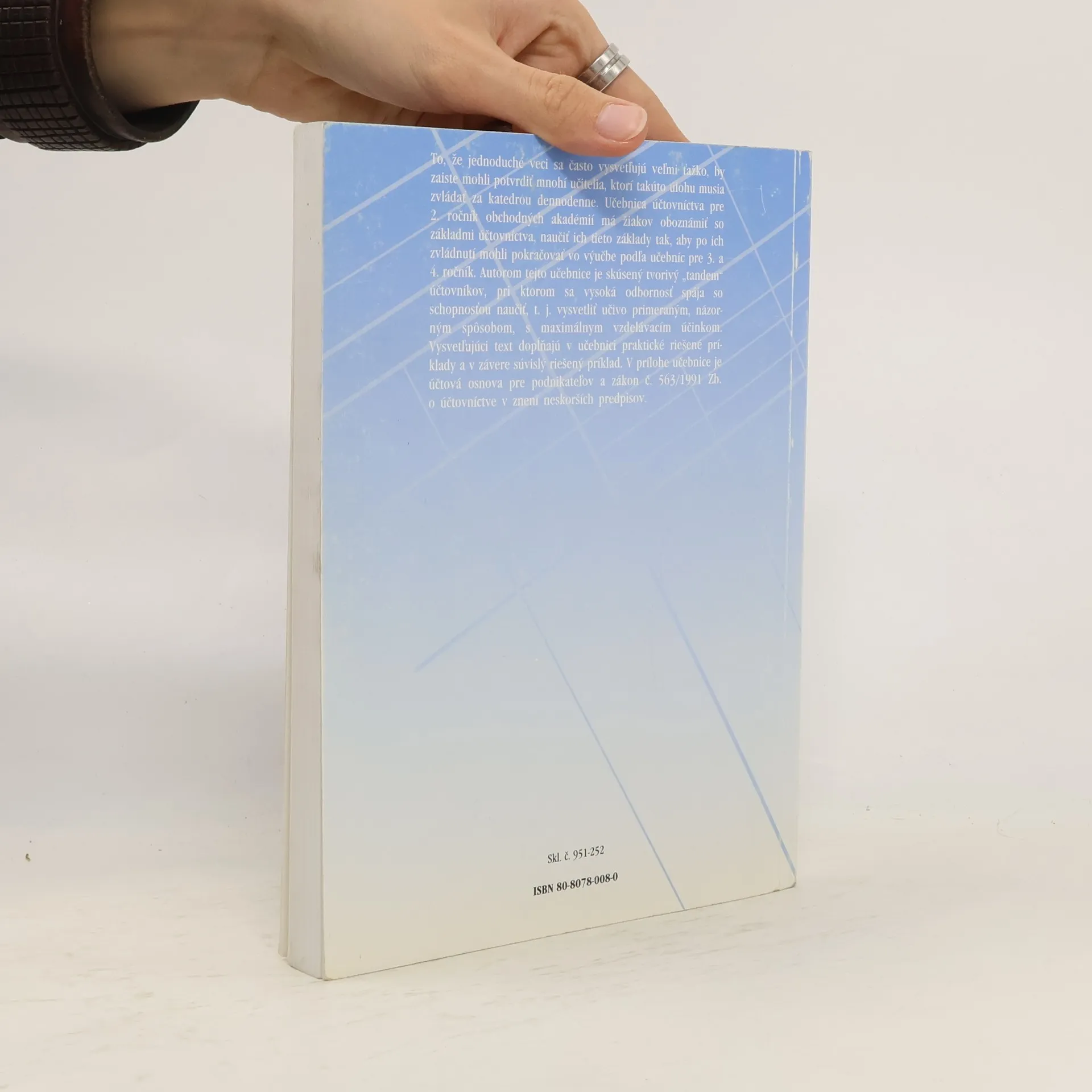 Učebnica účtovníctva, ktorá vyvolala veľmi priaznivý ohlas u učiteľov tohto predmetu i študentov na stredných školách. Účtovníctvo sa v nej vysvetľuje primeraným, názorným spôsobom, s maximálnym vzdelávacím účinkom.