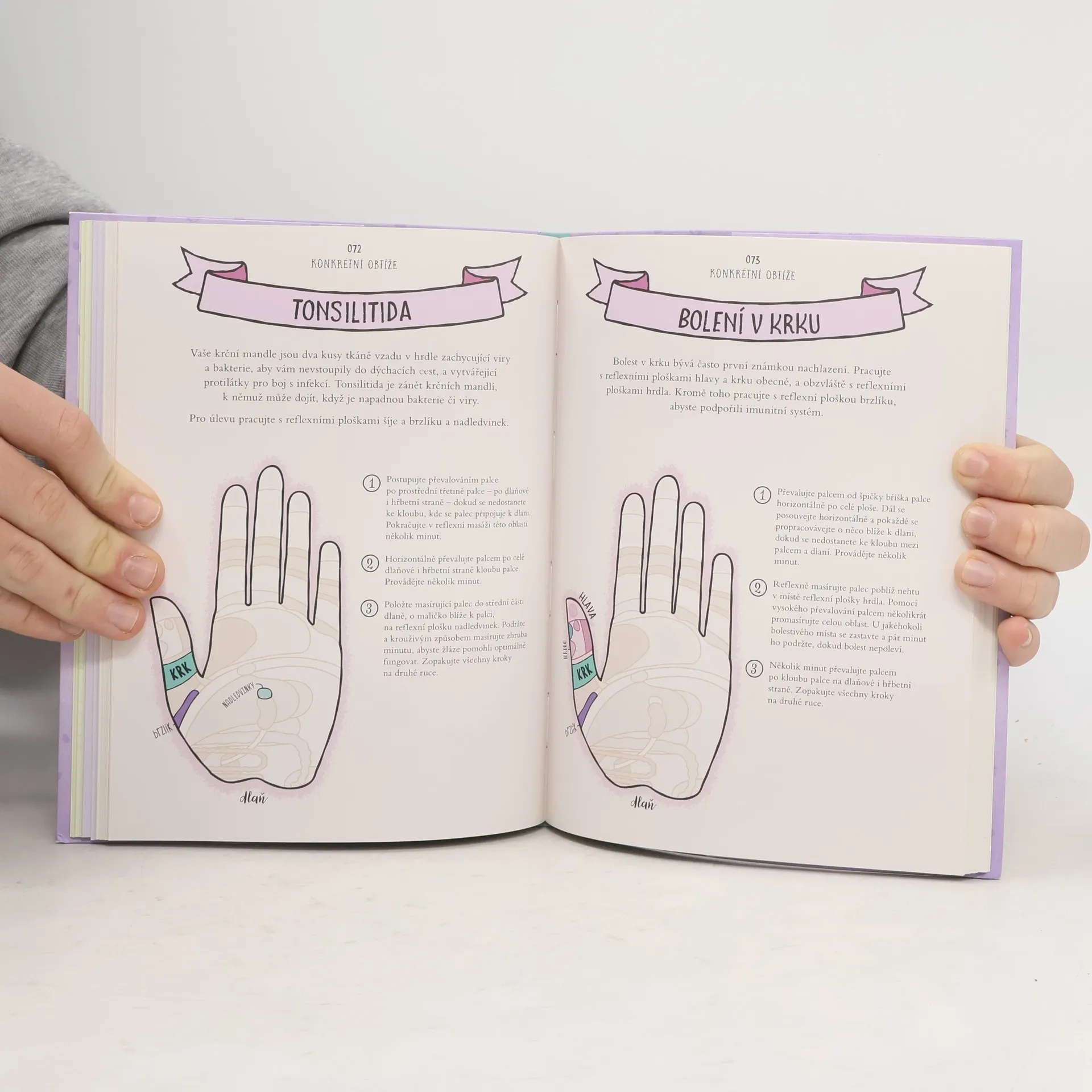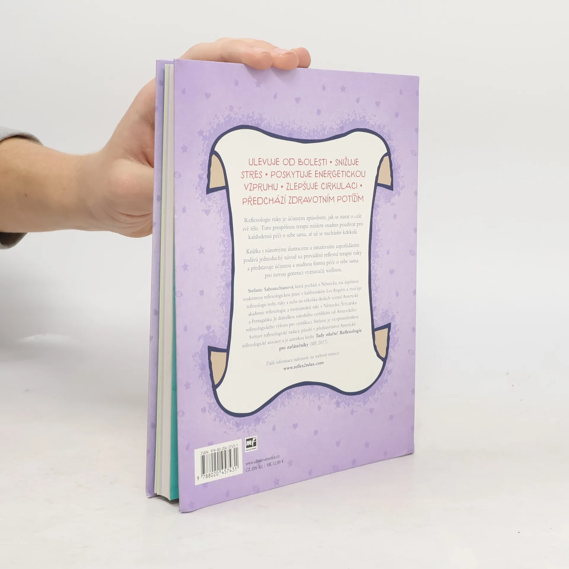 Reflexologie ruky je účinný způsob, jak se starat o celé své tělo. Můžete ji snadno používat pro každodenní péči o sebe sama, ať se nacházíte kdekoli. Praktická ilustrovaná příručka předkládá novou a jednoduchou metodu, jak se umění reflexní terapie naučit – seznamuje se všemi reflexními zónami a ploškami, používanými technikami i sestavami, a dále popisuje konkrétní potíže v jednotlivých částech těla a postupy, jak od nich pomocí reflexní masáže ruky ulevit. Je určena pro začátečníky a na domácí použití.