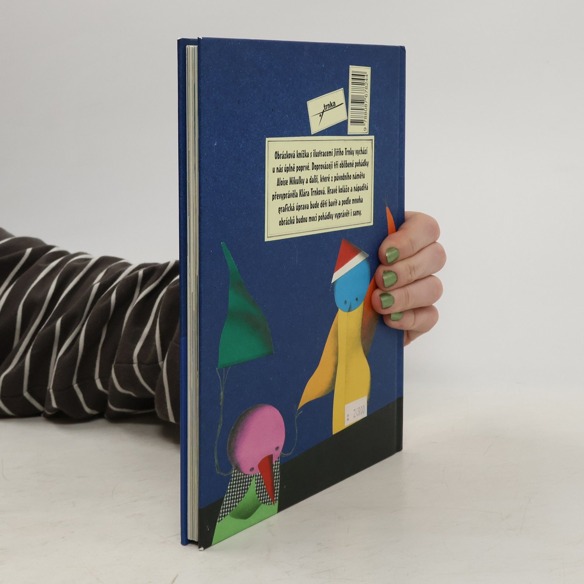 Obrázková knížka s ilustracemi Jiřího Trnky vychází u nás úplně poprvé. Doprovázejí tři oblíbené pohádky Aloise Mikulky a další, které z původního námětu převyprávěla Klára Trnková. Hravé koláže a nápaditá grafická úprava bude děti bavit a podle mnoha obrázků budou moci pohádky vyprávět i samy.