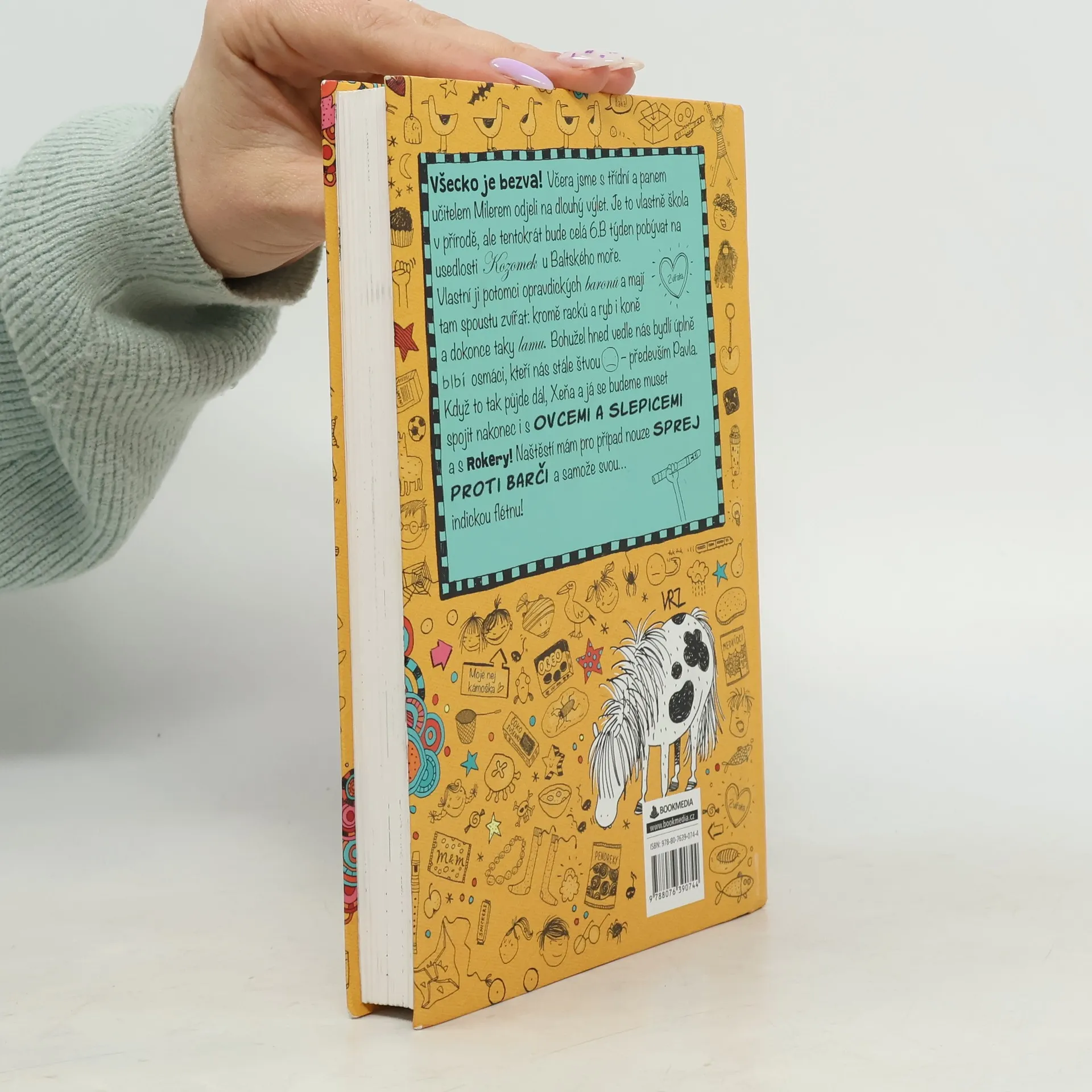 Všecko je bezva! Včera jsme s třídní a panem učitelem Milerem odjeli na dlouhý výlet. Je to vlastně škola v přírodě, ale tentokrát bude celá 6.B týden pobývat na usedlosti Kozomek u Baltského moře. Vlastní ji potomci opravdických baronů a mají tam spoustu zvířat: kromě racků a ryb i koně, a dokonce taky lamu. Bohužel hned vedle nás bydlí úplně blbí osmáci, kteří nás stále štvou - především Pavla. Když to tak půjde dál, Xeňa a já se budeme muset spojit nakonec i s Ovcemi a slepicemi a s Rokery! Naštěstí mám pro případ nouze sprej proti Barči a samože svou… indickou flétnu!