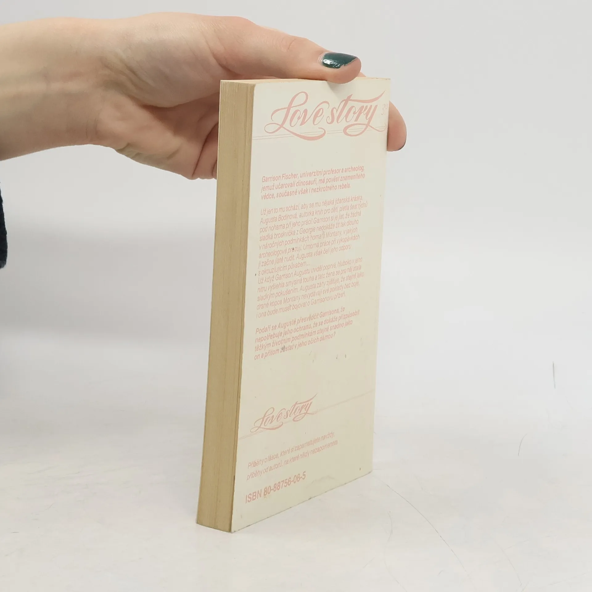 Garrison Fischer, univerzitní profesor a archeolog, jemuž učarovali dinosauři, má pověst znamenitého vědce, současně však i nezkrotného rebela. Už jen to mu schází, aby se mu nějaká jižanská kráska, Augusta Bodinová, autorka knih pro děti, pletla šest týdnů pod nohama při jeho práci! Garrison si je jist, že žádná sladká broskvička z Georgie nedokáže žít tak dlouho v náročných podmínkách hornaté Montany, v jakých archeologové pracují. Úmorná práce při vykopávkách ji začne jistě nudit. Augusta však čelí jeho odporu s okouzlujícím půvabem... Už když Garrison Augustu uviděl poprvé, hluboko v jeho nitru vyšlehla smyslná touha a tato žena se pro něj stala sladkým pokušením. Augusta záhy zjišťuje, že stejně jako drsné kopce Montany nevydávají své poklady bez boje, i ona bude muset bojovat o Garrisonovu přízeň. Podaří se Augustě přesvědčit Garrisona, že nepotřebuje jeho ochranu, že se dokáže přispůsobit těžkým životním podmínkám stejně snadno jako on a přitom zůstat v jeho očích dámou?