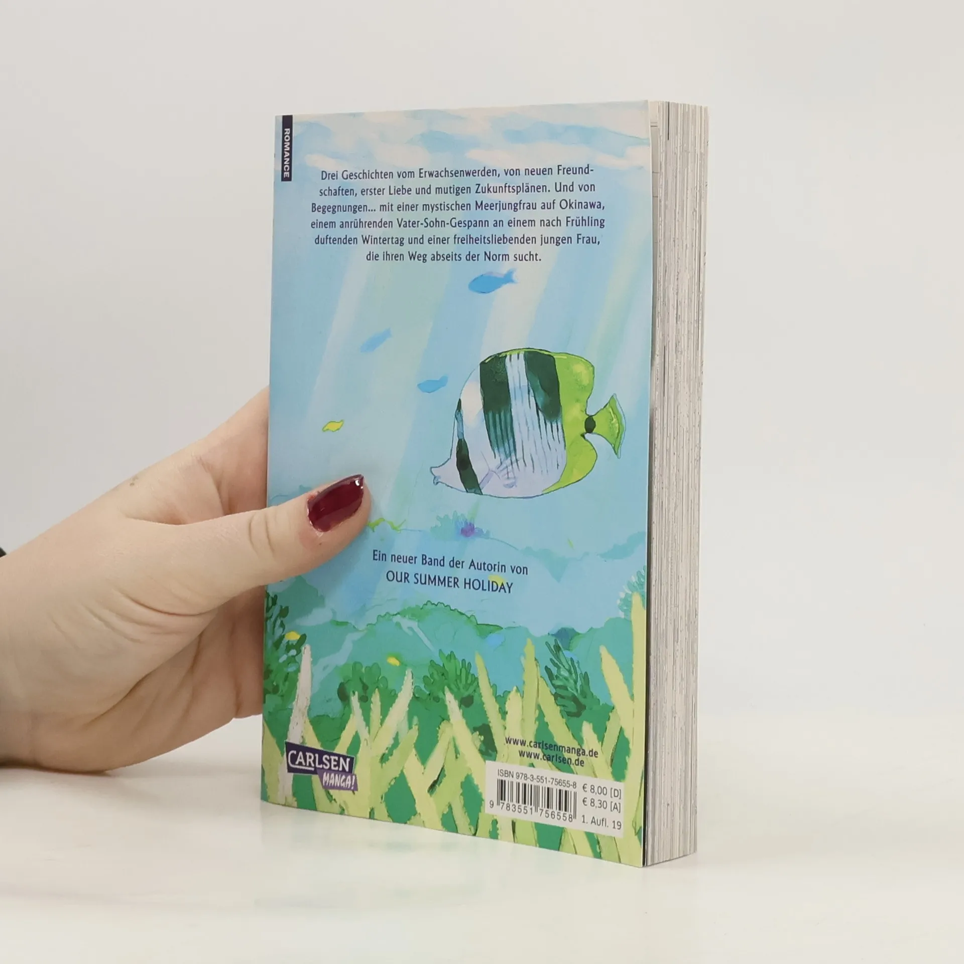 Drei Geschichten zum Erwachsenwerden: Eine in Okinawa angesiedelte Coming-of-Age-Story um einen Jungen mit einem Faible für Meerjungfrauen. Eine weitere dreht sich um einen obdachlosen Vater mit seinem Sohn, der Schnee und Kälte Zuflucht in einer Bücherei sucht, den Abschluss bildet eine Freundschaftgeschichte um zwei Mädchen. Wie auch schon in OUR SUMMER HOLIDAY gelingt es Kaori Ozaki, junge Charaktere beim Erwachsenwerden sehr einfühlsam aufs Papier zu bannen.