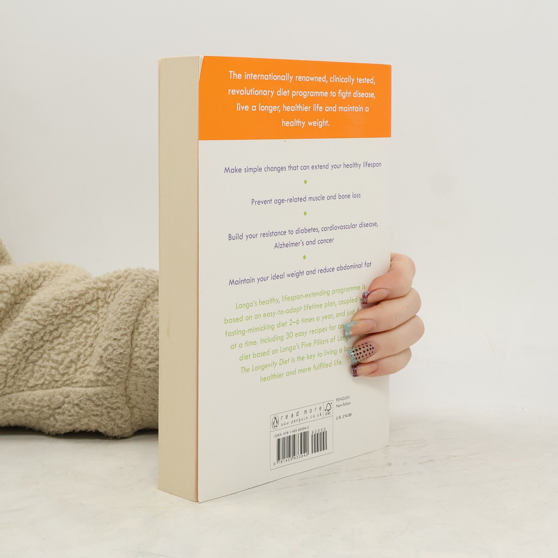 Valter Longo developed fast-mimicking diet (FMD) - a simple daily eating plan and periodic, fast-mimicking techniques that yield the same age-defying results as more rigorous, traditional fasting plans. Low in protein and sugars and rich in healthy fats and plant-based foods, Longo's life-extending plan is based on an easy-to-adopt pescatarian diet along with the FMD. Including 30 easy recipes for an everyday diet and the FMD plan. Print run 75,000
