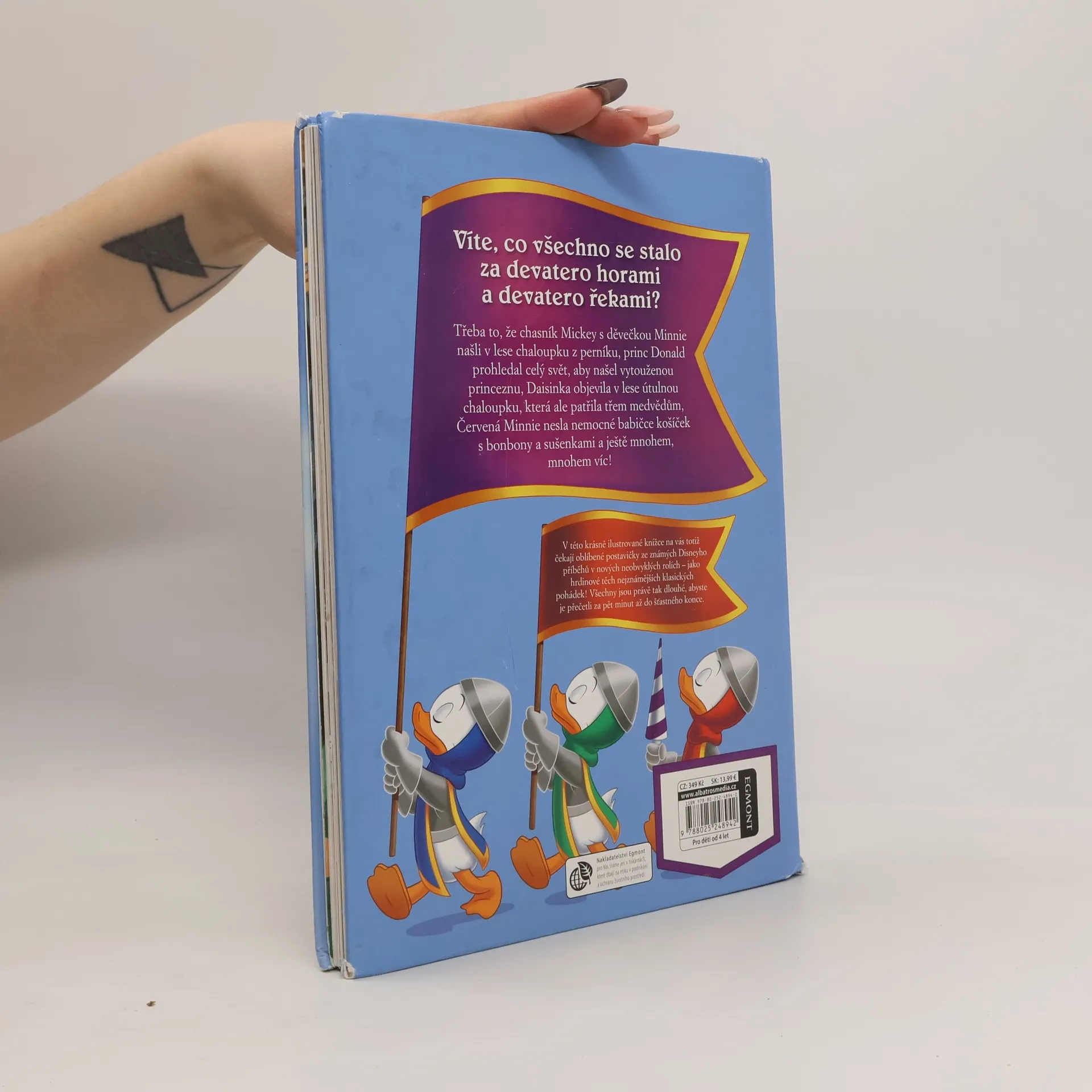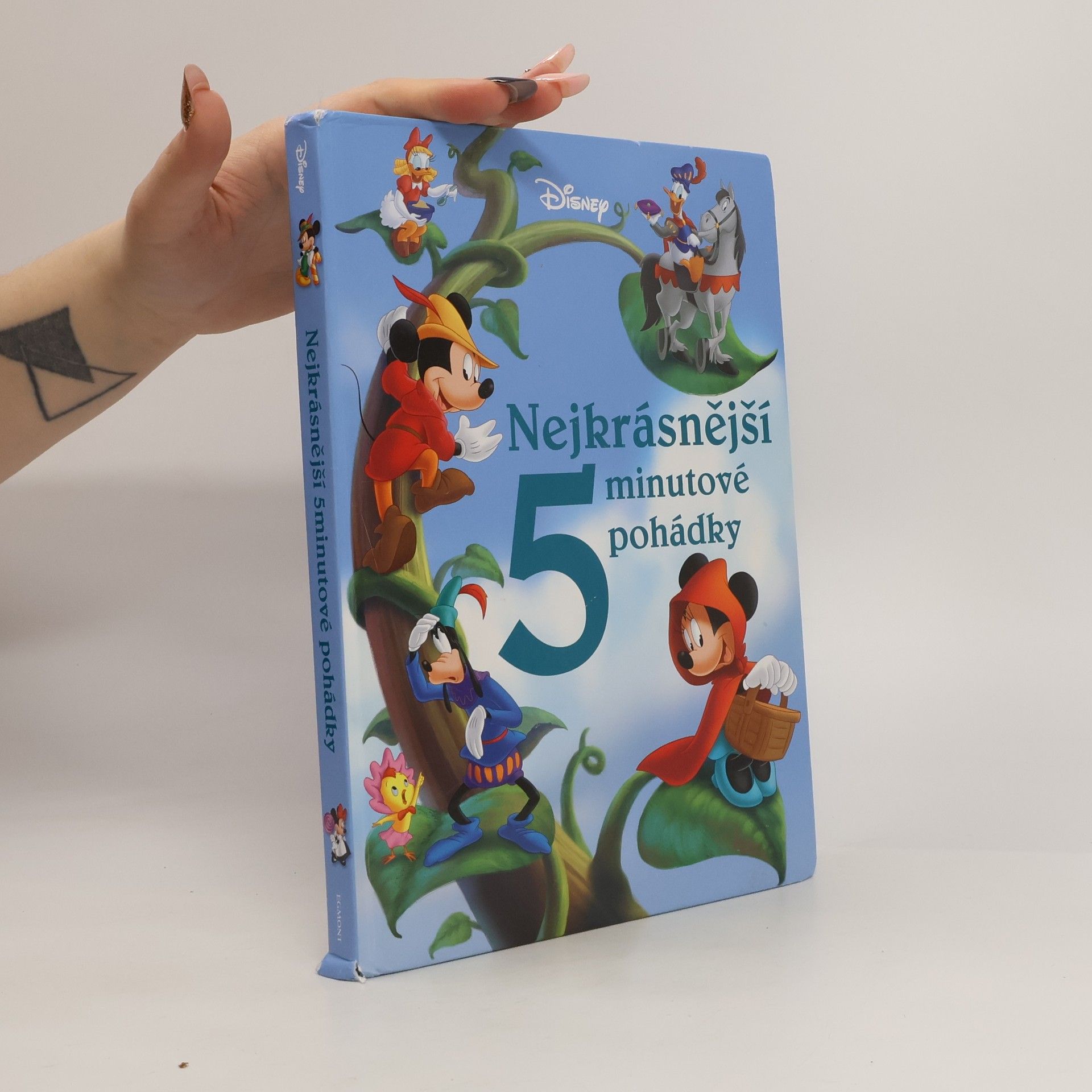 Sbírka 12 známých pohádek s populárními postavičkami od Disneyho v hlavní roli Víte, co vše se stalo za devatero horami a devatero řekami? Třeba to, že chasník Mickey našel v lese chaloupku z perníku, princ Donald jel za svou princeznou přes celý svět, Červená Minnie nesla babičce košíček s dobrotami, a ještě mnohem víc! V úžasně ilustrovaných příbězích na vás čekají postavičky od Disneyho v nové roli – jako hrdinové klasických pohádek. A každá z nich je právě tak dlouhá, že ji s dětmi za pět minut přečtete až do šťastného konce.