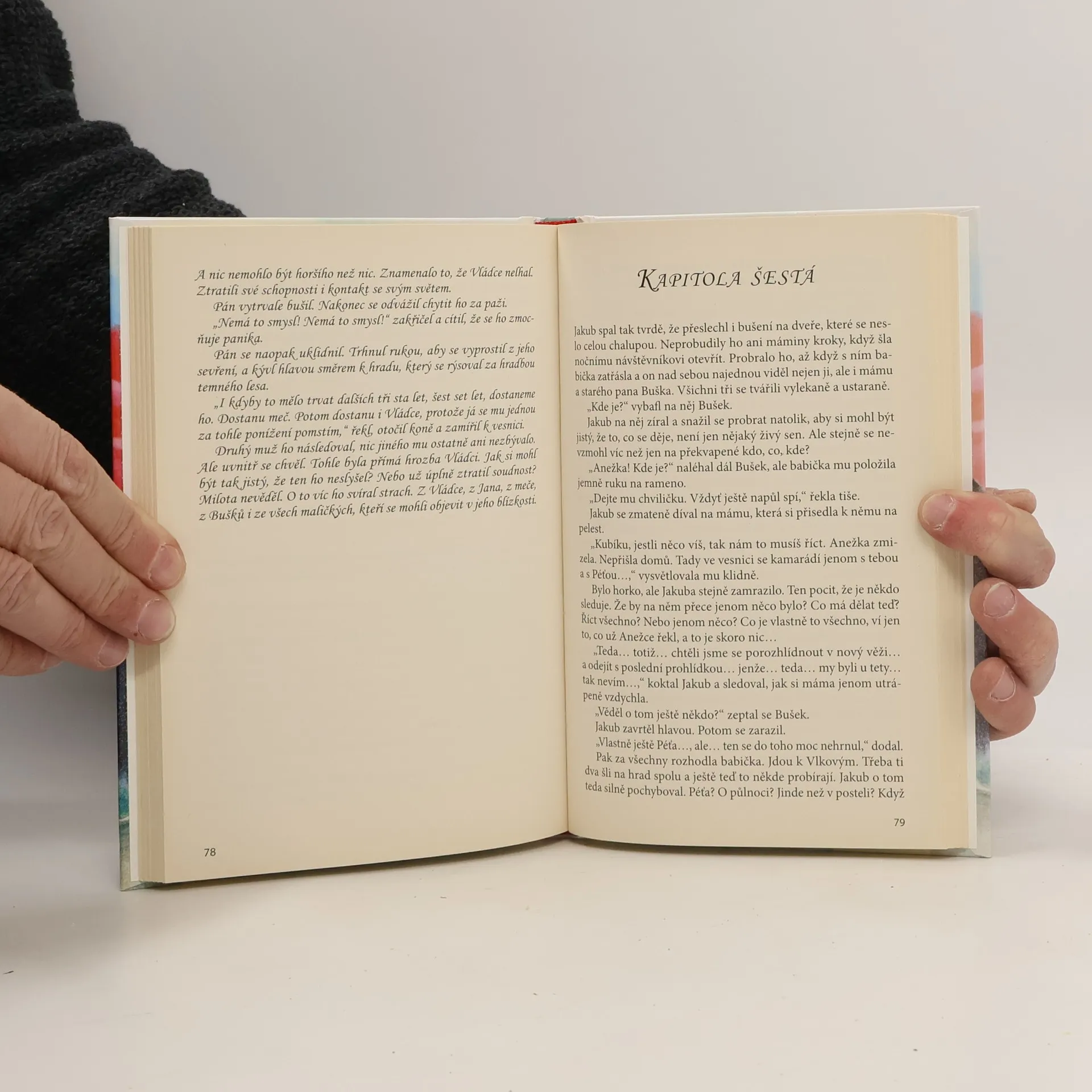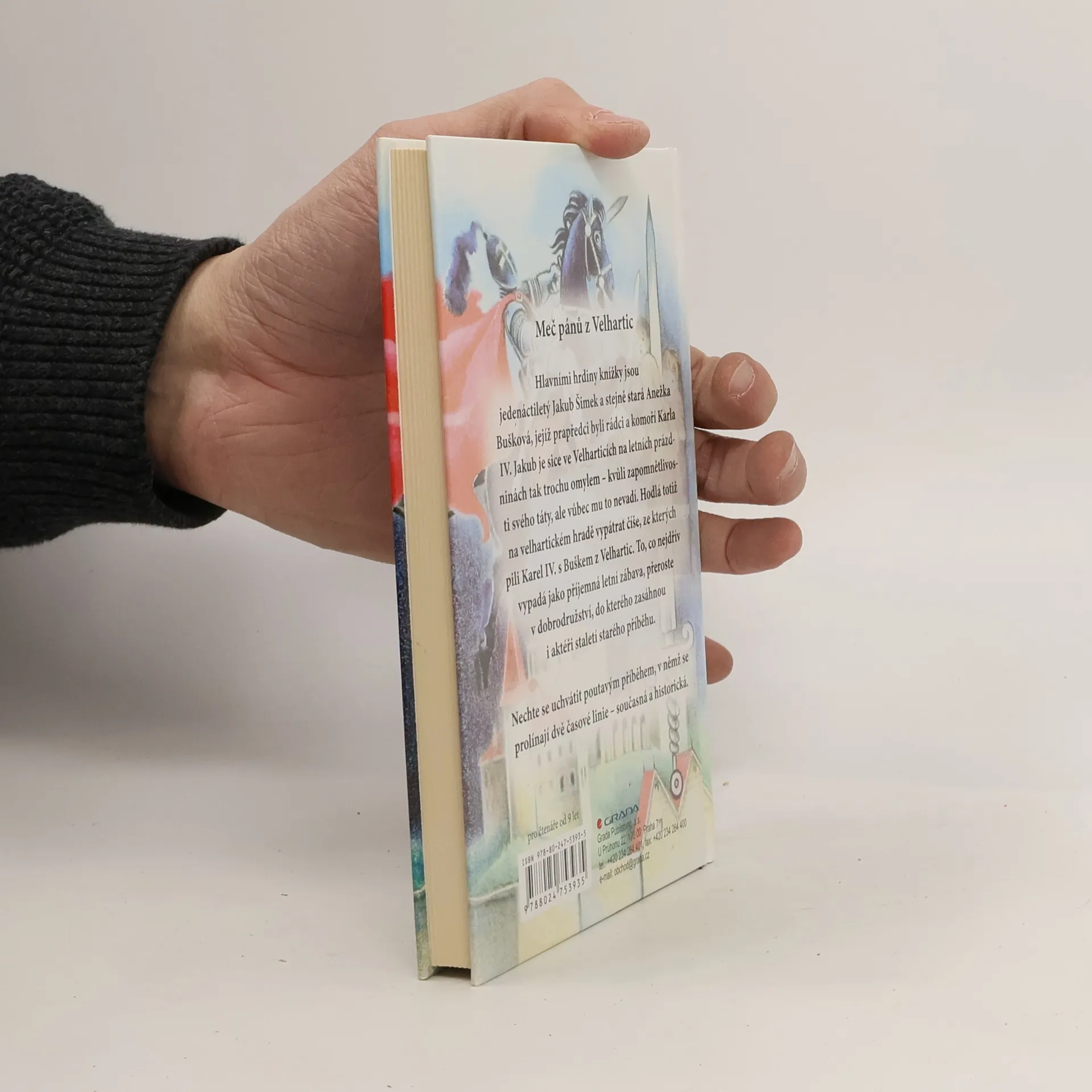 Hlavními hrdiny knížky Meč pánů z Velhartic jsou jedenáctiletý Jakub Šimek a stejně stará Anežka Bušková, jejíž prapředci byli rádci a komoří Karla IV. Jakub je sice ve Velharticích na letních prázdninách tak trochu omylem - kvůli zapomnětlivosti svého táty, ale vůbec mu to nevadí. Hodlá totiž na velhartickém hradě vypátrat číše, ze kterých pili Karel IV. s Buškem z Velhartic. To, co nejdřív vypadá jako příjemná letní zábava, přeroste v dobrodružství, do kterého zasáhnou i aktéři staletí starého příběhu.