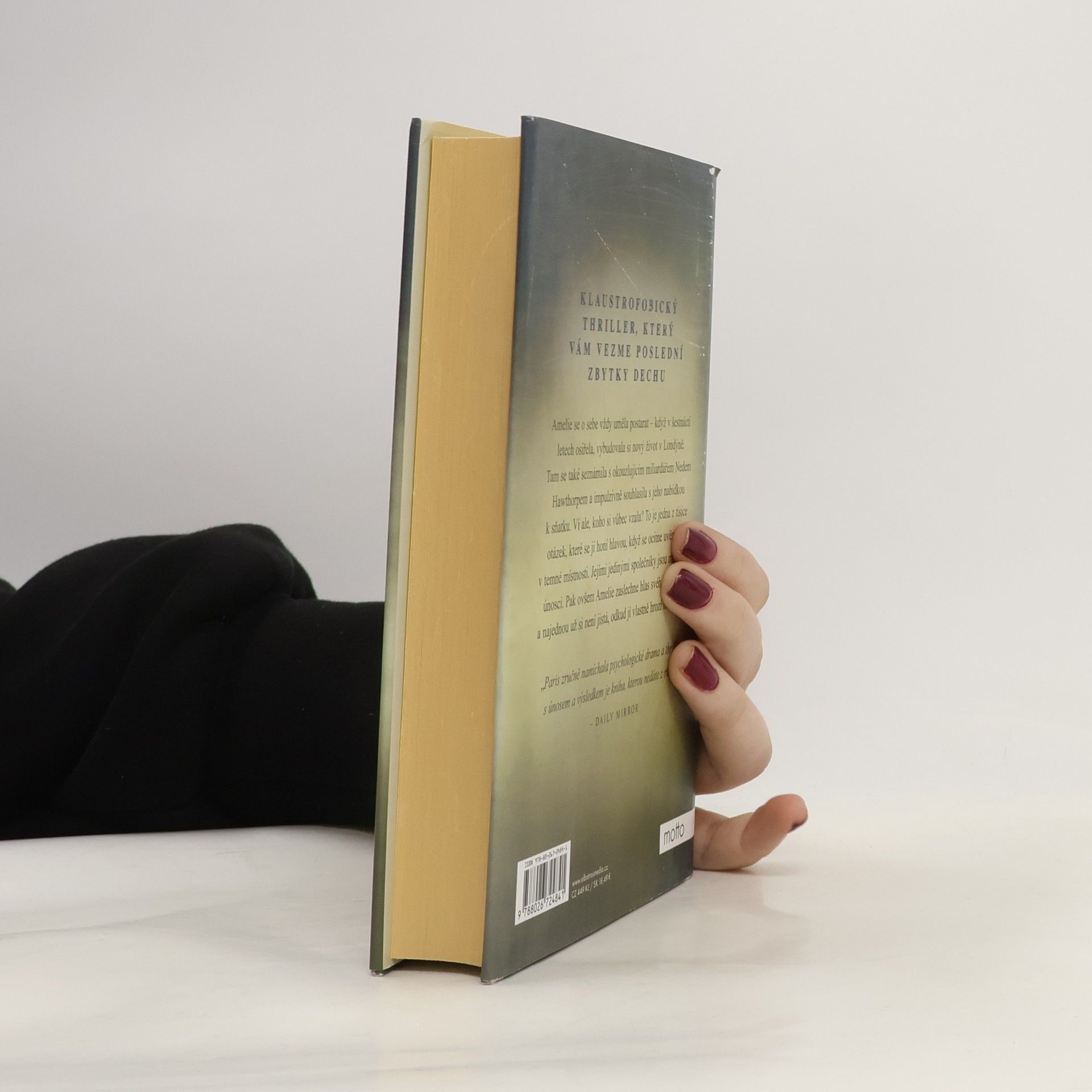 Klaustrofobický thriller, který vám vezme poslední zbytky dechu. Amelie se o sebe vždy uměla postarat – když v šestnácti letech osiřela, vybudovala si nový život v Londýně. Tam se taky seznámila s okouzlujícím miliardářem Nedem Hawthorpem a impulzivně souhlasila s jeho nabídkou k sňatku. Ví ale, koho si vůbec vzala? To je jedna z tisíce otázek, které se jí honí hlavou, když se ocitne uvězněná v temné místnosti. Jejími jedinými společníky jsou mlčenliví únosci. Pak ovšem Amelie zaslechne hlas svého manžela a najednou už si není jistá, odkud jí vlastně hrozí nebezpečí.