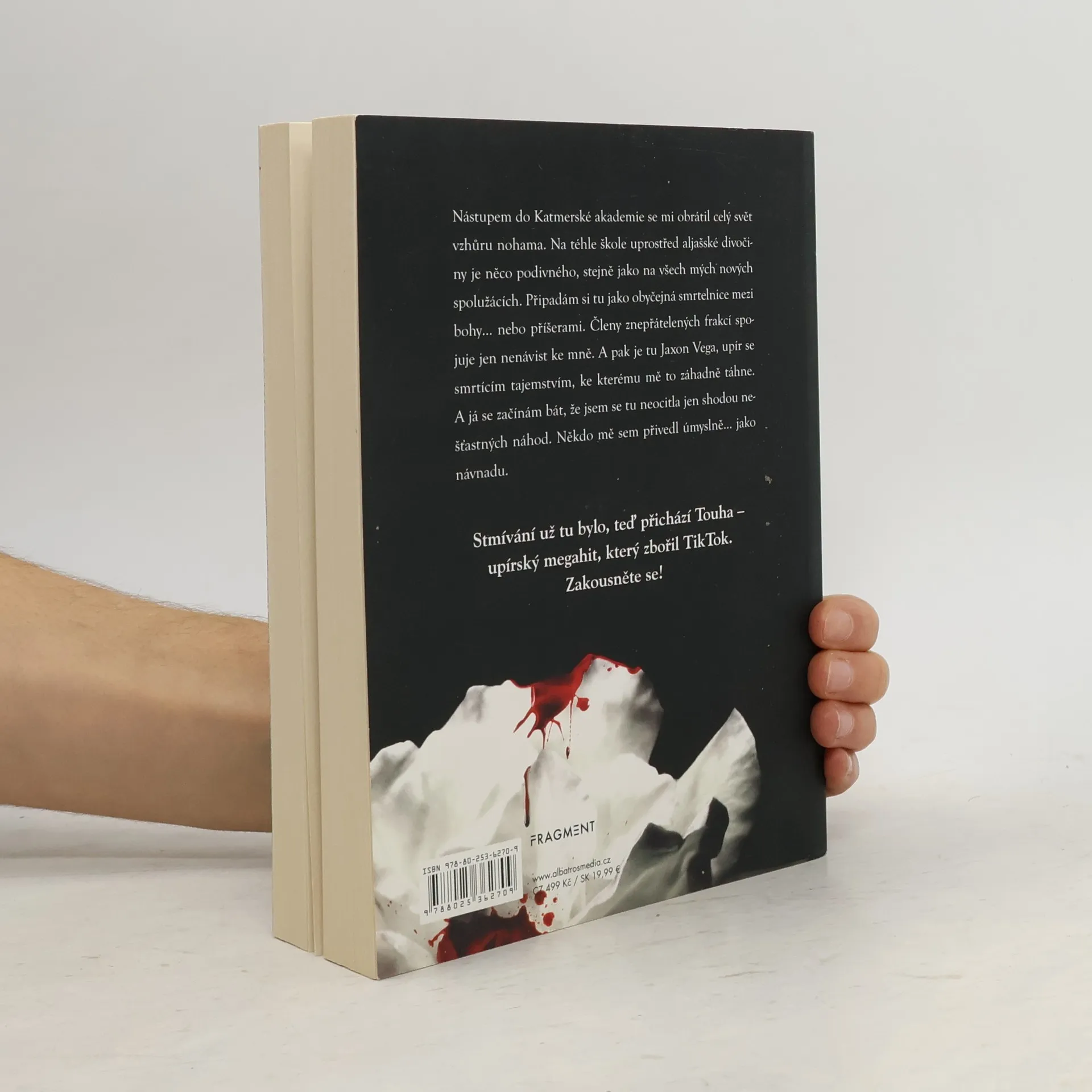 Nástupem do Katmerské akademie se mi obrátil celý svět vzhůru nohama. Na téhle škole uprostřed aljašské divočiny je něco podivného, stejně jako na všech mých nových spolužácích. Připadám si tu jako obyčejná smrtelnice mezi bohy… nebo příšerami. Členy znepřátelených frakcí spojuje jen nenávist ke mně. A pak je tu Jaxon Vega, upír se smrtícím tajemstvím, ke kterému mě to záhadně táhne. A já se začínám bát, že jsem se tu neocitla jen shodou nešťastných náhod. Někdo mě sem přivedl úmyslně… jako návnadu.