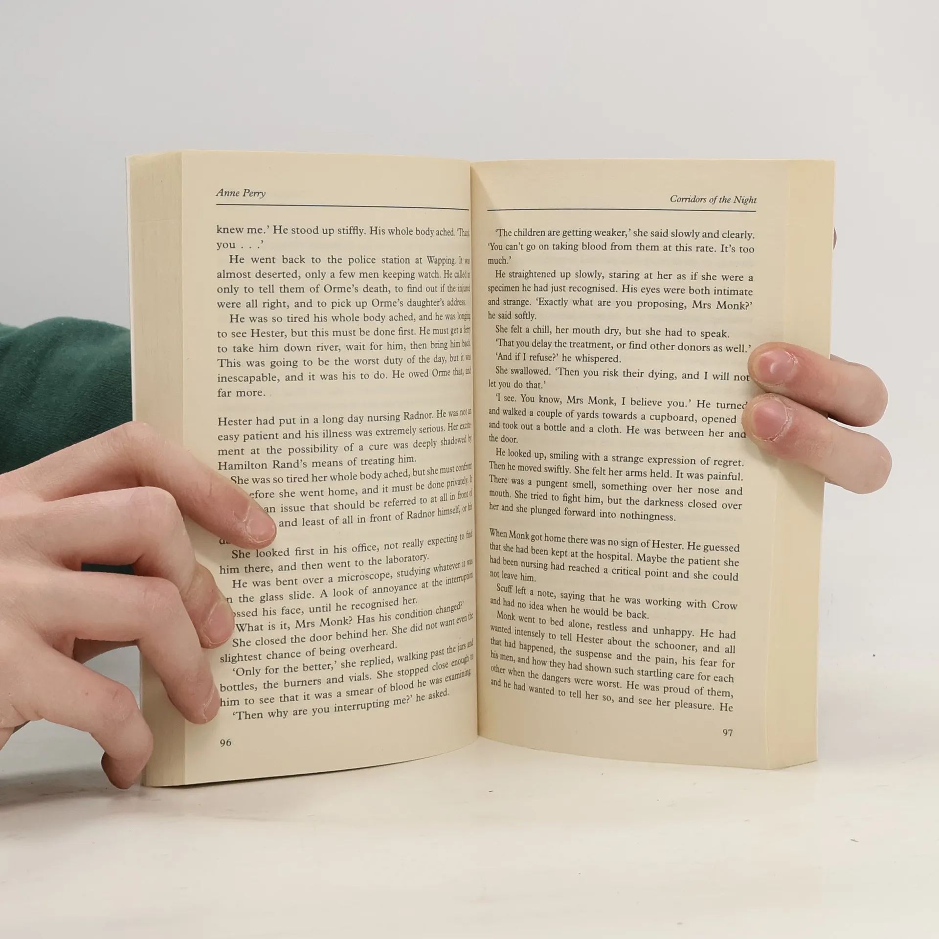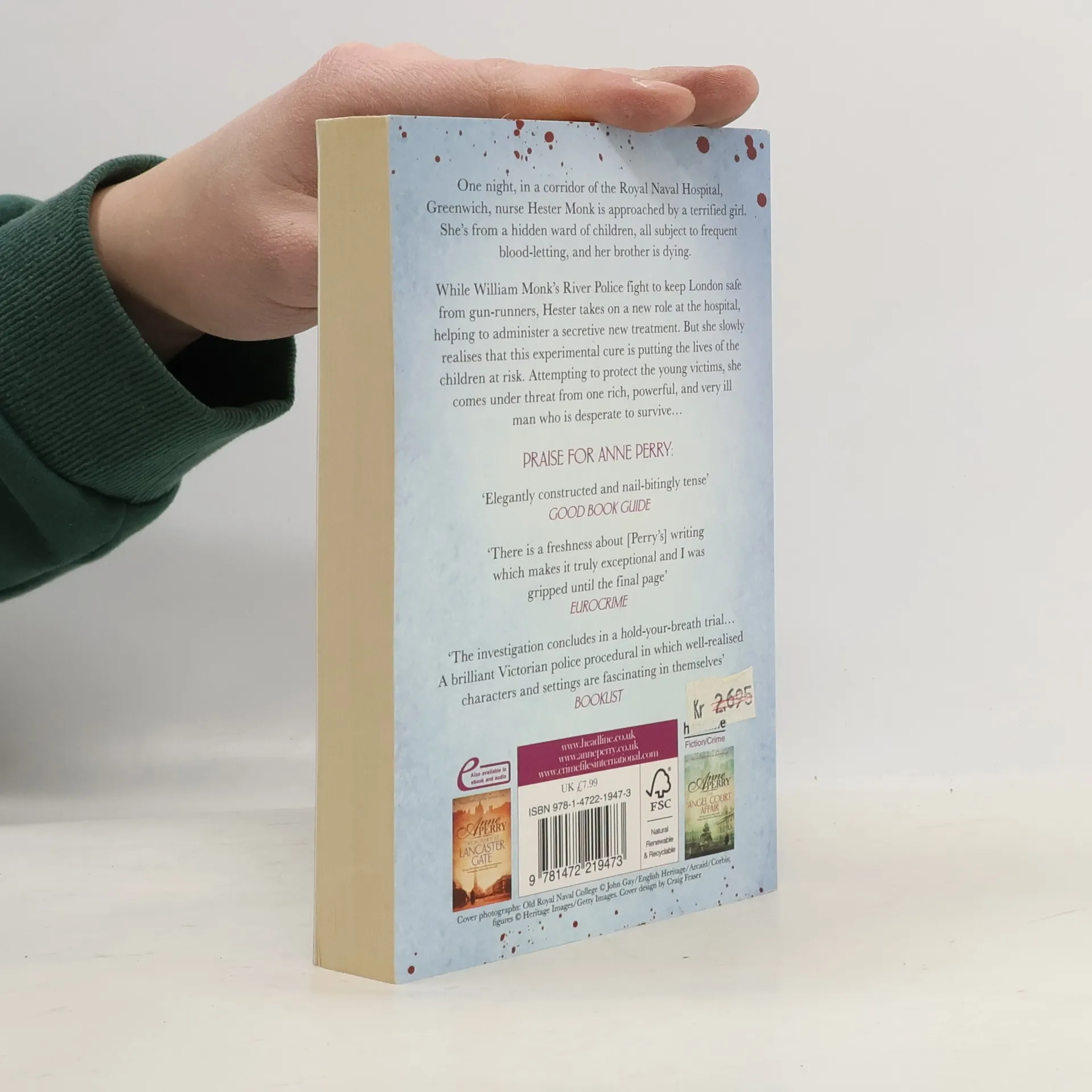 One night, in a corridor of the Royal Naval Hospital, Greenwich, nurse Hester Monk is approached by a terrified girl. She's from a hidden ward of children, all subject to frequent blood-letting, and her brother is dying. While William Monk's River Police fight to keep London safe from gun-runners, Hester takes on a new role at the hospital, helping to administer a secretive new treatment. But she slowly realises that this experimental cure is putting the lives of the children at risk. Attempting to protect the young victims, she comes under threat from one rich, powerful, and very ill man who is desperate to survive...