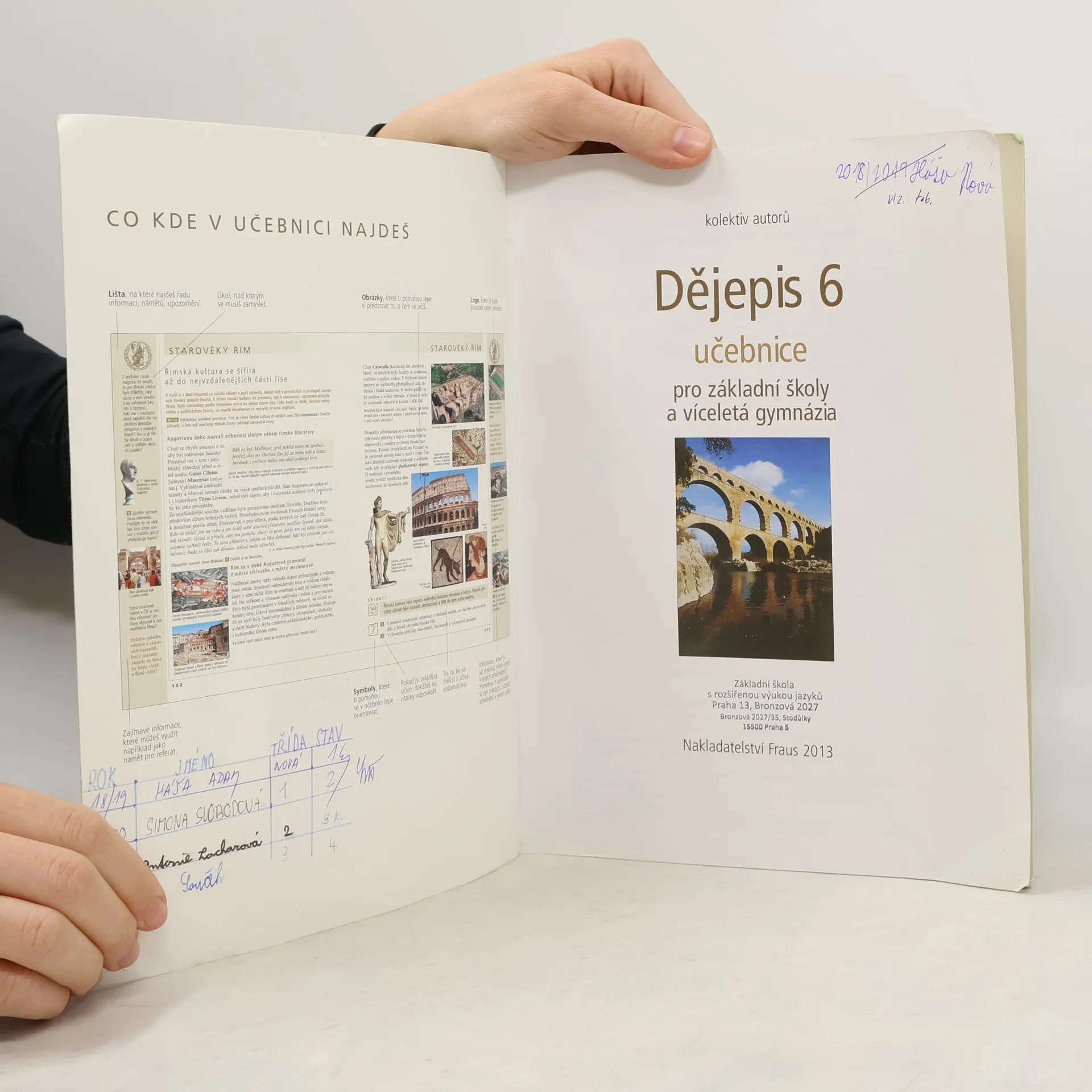 Pravěk a starověk. 2. upravené vydání učebnice pro 6. ročník/primu obsahuje:Co, proč a jak se budeme učit (úvod do studia dějepisu),Pravěk,První starověké státy (Egypt, Mezopotámie, Indie, Čína, Starověká Fénicie, Kanaán a starý Izrael, Život asijských kočovníků),Starověké Řecko,Starověký Řím,Shrnutí poznatků o pravěku a starověku,Slovníček pojmů,Rejstřík,Přehled požadovaných výstupů a rozvíjených klíčových, kompetencí RVP.Každá lekce odpovídá jedné dvojstránce. Učebnice obsahuje sedm celostránkových map a celostránkových časových os k tematickým celkům, dále několik desítek historických map menšího formátu. Součástí učebnice jsou tři speciální lekce, které systematizují získané poznatky. Druhé vydání učebnice obsahuje oproti 1. vydání několik upravených a přepracovaných kapitol, v nichž je vylíčena evoluce rodu Homo dle aktualizovaných poznatků soudobých vědců. Učebnici zpracoval širší kolektiv autorů v tomto složení: Jiří Linhart, Milan Metlička, Petr Hubka, Karel Rom, Miroslav Popelka, Ivana Kalistová, Václav Soukup, Ladislav Bareš, Jana Pečírková, Jaroslav Strnad, Jakub Maršálek, Hana Třísková, Eva Zálohová, Igor Lisový, Václava Korcová, Eliška Bartáková, Radovan Lovčí, Jiří Suda, Marek Novotný a Jitka Tětková.