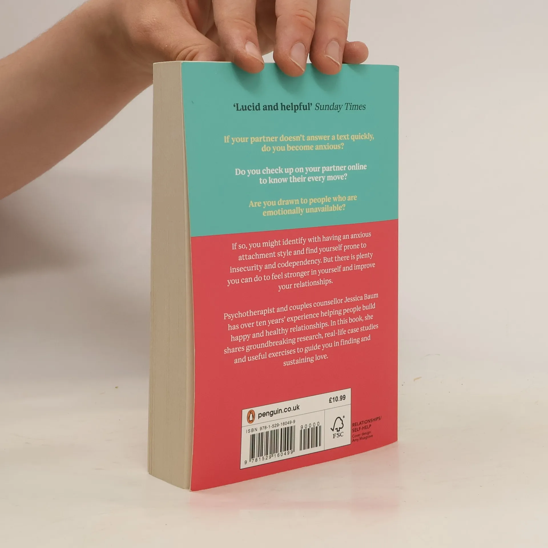 If your partner doesn't answer a text quickly, do you become anxious? Do you check up on your partner online to know their every move? Are you drawn to people who are emotionally unavailable? If so, you might identify with having an anxious attachment style and find yourself prone to insecurity and co-dependency. But there is plenty you can do feel stronger in yourself and improve your relationships. Psychotherapist and couples' counsellor Jessica Baum has over ten years' experience helping people build happy and healthy relationships. In this book, she shares ground-breaking research, real-life case studies and useful exercises to guide you in finding and sustaining love.