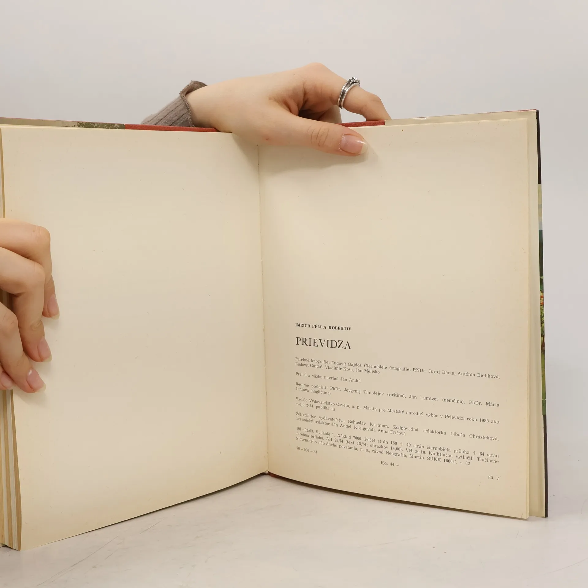 Zemepisná poloha, miestopis, prírodné pomery, história, kultúra, šport a súčasný stav Prievidze (vydané v r. 1983). Obrazová príloha súčasťou publikácie.