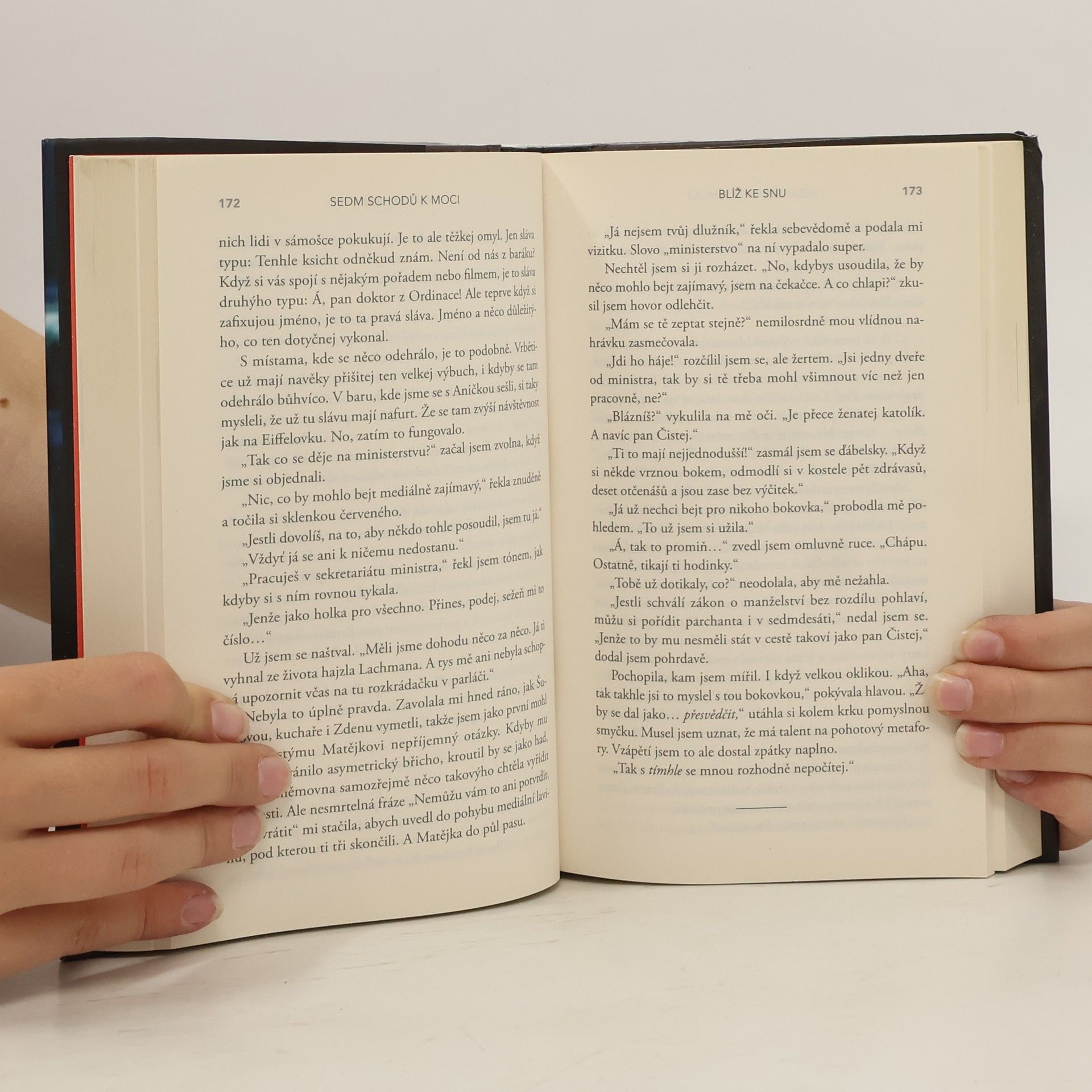 Anička Malá se dostane z malého města do Prahy a nastoupí jako servírka do jídelny poslanecké sněmovny. Ačkoli na začátku rozezná s bídou premiéra a o politiku se nezajímá, postupně začíná poznávat nejen její svět, ale hlavně její zákulisí. K tomu jí vydatně pomáhá cynický bulvární novinář Ivan Krčka, postupně uzavřou tiché spojenectví, z něhož oba mají prospěch. Anička postupně stoupá společenským žebříčkem, proplétá se komplikovanými vztahy, až se dostane k budoucímu premiérovi Tomáši Vichrovi. Podle knižní předlohy byl i natočen televizní seriál na TV Prima.
