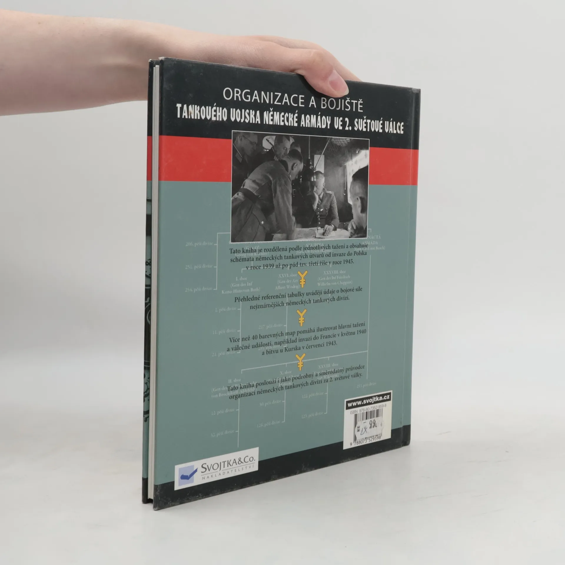 Tato kniha je rozdělena podle jednotlivých tažení a obsahuje schémata pancéřových divizí všech německých sborů od invaze do Polska v roce 1939 až po pád tzv. třetí říše v roce 1945. Najdete v ní přehledné referenční tabulky, které uvádějí údaje o bojové síle nejznámějších německých pancéřových divizí. 40 barevných map pomáhá ilustrovat hlavní tažení pěchoty a válečné události, například invazi do Francie v květnu 1940 a bitvu u Kurska v létě 1943. Tato kniha poslouží i jako podrobný a směrodatný průvodce organizací německých pancéřových divizí za 2. světové války.