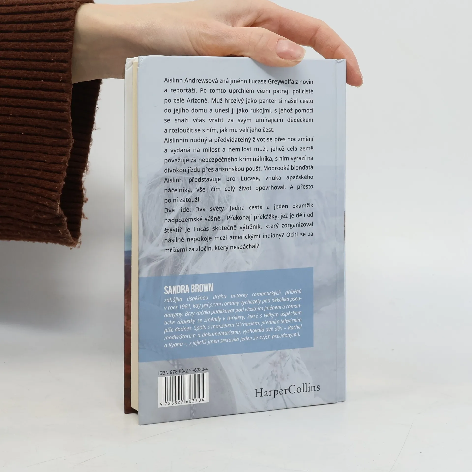 Aislinn Andrewsová zná jméno Lucase Greywolfa z novin a reportáží. Po tomto uprchlém vězni pátrají policisté po celé Arizoně. Muž hrozivý jako panter si našel cestu do jejího domu a unesl ji jako rukojmí, s jehož pomocí se snaží včas vrátit za svým umírajícím dědečkem a rozloučit se s ním, jak mu velí jeho čest. Aislinnin nudný a předvídatelný život se přes noc změní a vydaná na milost a nemilost muži, jejž celá země považuje za nebezpečného kriminálníka, s ním vyrazí na divokou jízdu přes arizonskou poušť. Modrooká blonďatá Aislinn představuje pro Lucase, vnuka apačského náčelníka, vše, čím celý život opovrhoval. A přesto po ní zatouží. Dva lidé. Dva světy. Jedna cesta a jeden okamžik nadpozemské vášně… Překonají překážky, jež je dělí od štěstí? A je Lucas skutečně výtržník, který zorganizoval násilné nepokoje mezi americkými indiány? A ocitl se za mřížemi za zločin, který nespáchal?