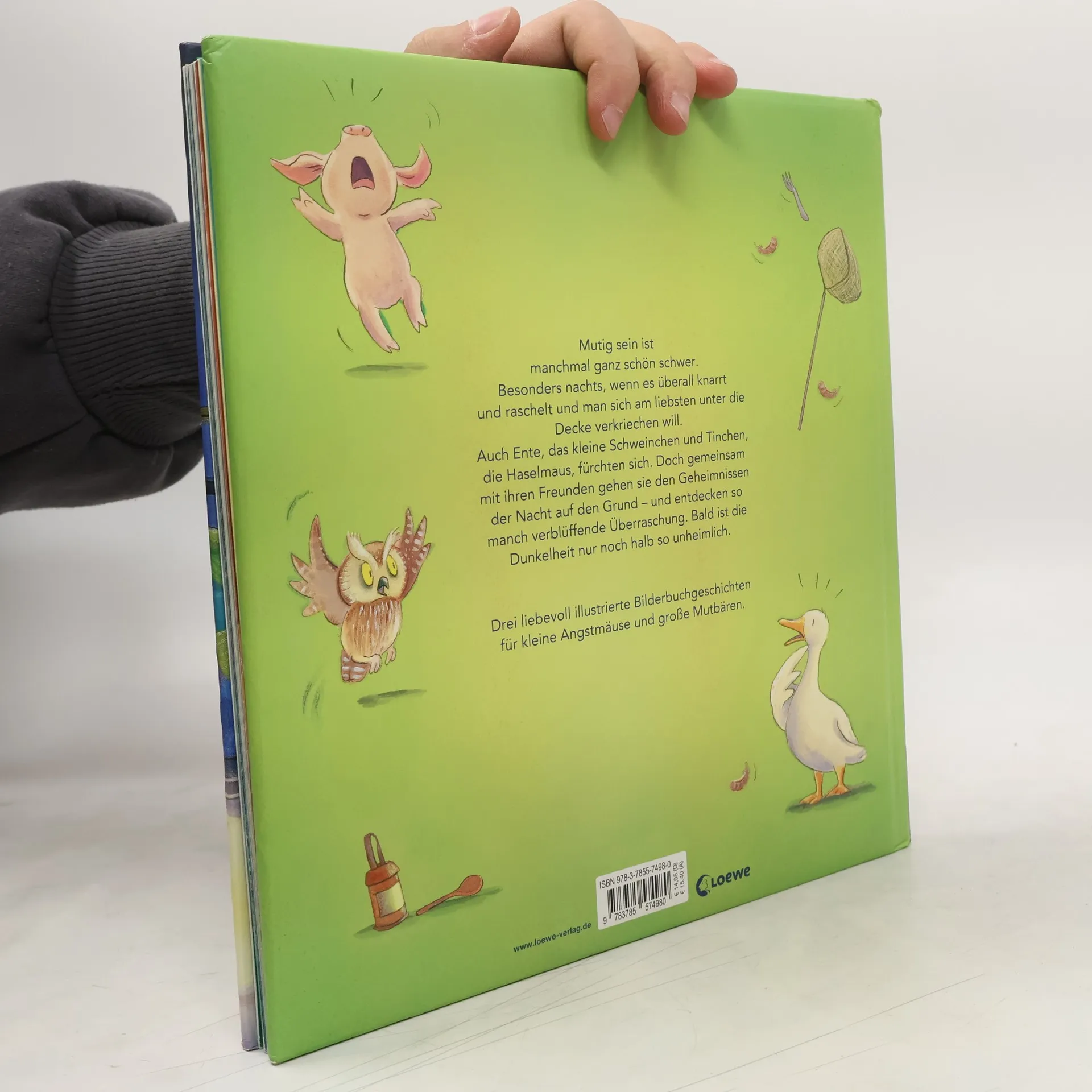 Das Buch ist bei deiner Buchhandlung vor Ort und bei vielen Online-Buchshops erhältlich! Mutig sein ist manchmal ganz schön schwer. Besonders nachts, wenn es überall knarrt und raschelt und man sich am liebsten unter die Decke verkriechen will. Auch Ente, das kleine Schweinchen und Tinchen, die Haselmaus, fürchten sich. Doch gemeinsam mit ihren Freunden gehen sie den Geheimnissen der Nacht auf den Grund – und entdecken so manch verblüffende Überraschung. Bald ist die Dunkelheit nur noch halb so unheimlich. Drei liebevoll illustrierte Bilderbuchgeschichten für kleine Angstmäuse und große Mutbären.