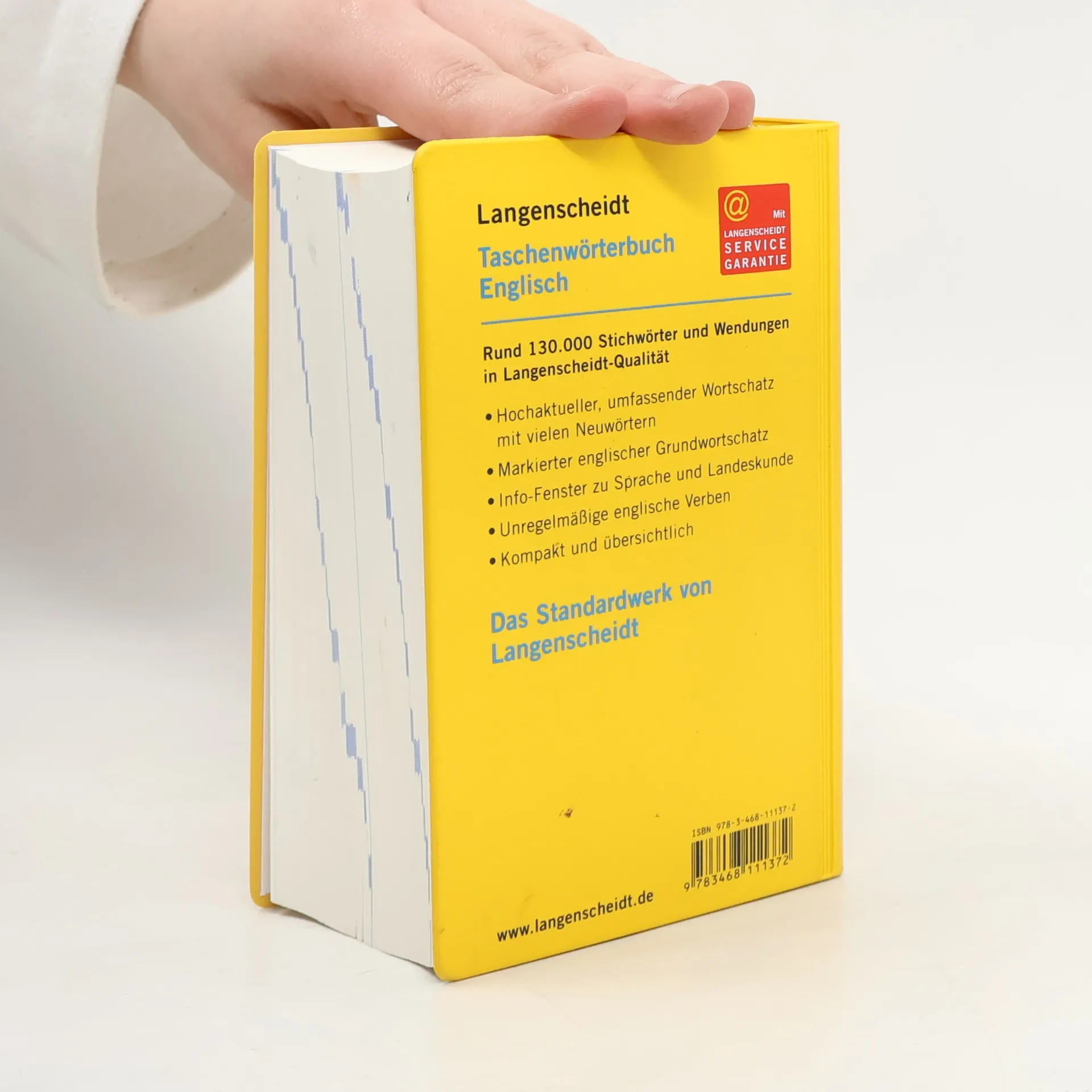 Das Langenscheidt Taschenwörterbuch Englisch ist mit seinem hohen Informationsgehalt das Standardwerk für die englische Sprache und deckt den Wortschatz des alltäglichen Sprachgebrauchs in Schule, Beruf und Alltag ab. Neben dem umfangreichen allgemeinsprachlichen Vokabular enthält das Taschenwörterbuch auch zahlreiche Fachtermini aus unterschiedlichen Bereichen wie Business, Informationstechnologie, Computer, Sport, Politik und Gesellschaft, etc. Die Darstellung der Stichwörter in ihrem sprachlichen Kontext, Hinweise auf die Stilebene oder das Fachgebiet sowie zahlreiche Bedeutungsdifferenzierungen unterstützen Sie beim korrekten Formulieren und Übersetzen * Rund 130.000 Stichwörter und Wendungen in Langenscheidt-Qualität * Hochaktueller, umfassender Wortschatz mit vielen Neuwörtern * Kennzeichnung des englischen Grundwortschatzes * Info-Fenster zu Wortschatz, Grammatik und Landeskunde * mit Langenscheidt Service Garantie (sollten Sie ein Wort nicht finden, das Sie in einem Wörterbuch dieser Größe erwarten würden, sucht Ihnen die Langenscheidt-Redaktion eine passende Übersetzung) * NEU: Farbige Info-Klappen mit modernen Formulierungshilfen für die Kommunikation in Englisch: Telefonieren, E-Mails und Briefe, Soziale Kontakte, typische Englischfallen, Uhrzeit
