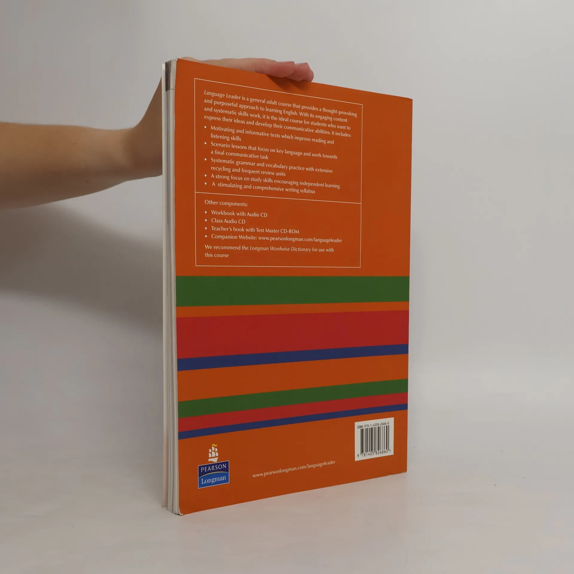 The Language Leader Elementary coursebook has 12 units covering factual topics from shopping trends to city transport. After every 3 units there is a review spread which practices the language that has been taught.