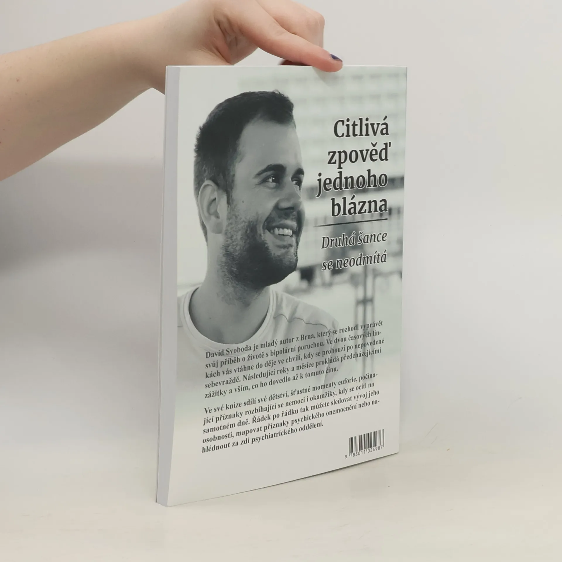 Tato kniha je můj splněný sen. Kniha, která si našla cestu ke svým čtenářům a která vznikla na popud mých známých. Po letech prožitých se závažnou psychickou poruchou jsem kdysi začal psát blog. Tehdy ho četli hlavně mí známí a kamarádi. Avšak můj příběh a jednotlivé zážitky je natolik nadchly, že mi vnukli nápad vydat svůj životní příběh jako knihu. Citlivou zpověď jednoho blázna prolínají dvě časové linky, které se s každou kapitolou střídají. Prožijete se mnou začátky mé nemoci, dětství, šťastné momenty euforie i zážitky, kdy jsem se ocitl na samotném dně. Veselé vzpomínky tak jdou ruku v ruce se smutnými okamžiky, popisem zkušeností s pobytem na psychiatrii i šokujícími milníky. Řádek po řádku tak můžete sledovat vývoj mé osobnosti. Vydáním této knihy si zároveň plním svůj sen o přiblížení světa psychických nemocí a prostředí psychiatrie nezasvěcené veřejnosti. Rád bych svou měrou přispěl ke zmenšení stigmatizace této problematiky a možná dal naději někomu, kdo právě prožívá podobně složité období.