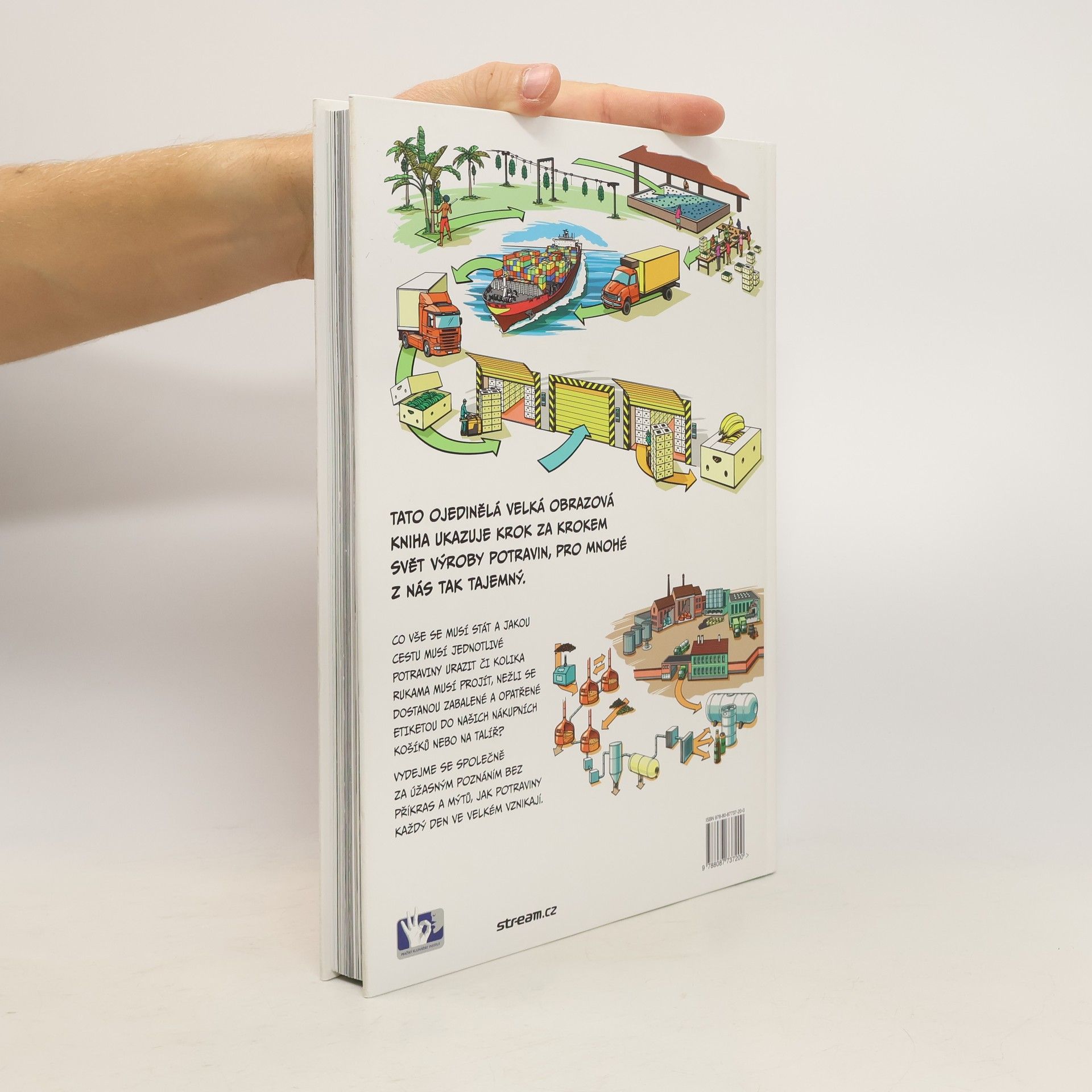 Velká naučná obrazová kniha autora kuchařských bestsellerů Romana Vaňka pro každého, kdo se chce dozvědět více o tajuplném vzniku potravin krok za krokem. Kniha boří některé mýty a díky moderním technologiím v mobilních telefonech zároveň zdarma zprostředkovává dobrodružnou cestu výroby nejen stovkami barevných fotografií, ale i krátkými filmy!! Školáci tak budou moci během výuky legálně vytáhnout z aktovek své „chytré“ telefony a nechat se filmově přenést do světa výroby. Kniha se tak může stát výbornou učební pomůckou nejen pro malé, ale i velké čtenáře. Každý moderní člověk by měl o koloběhu potravin a jejich výrobě znát co možná nejvíc. A to už od útlého věku.