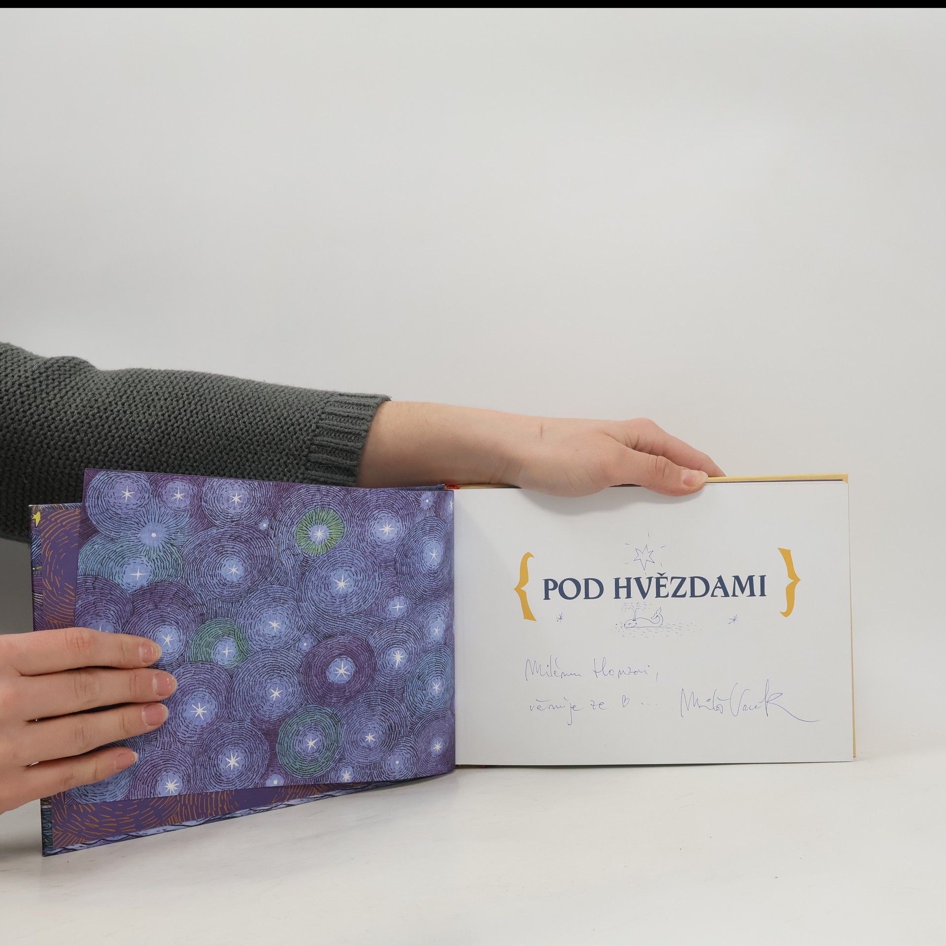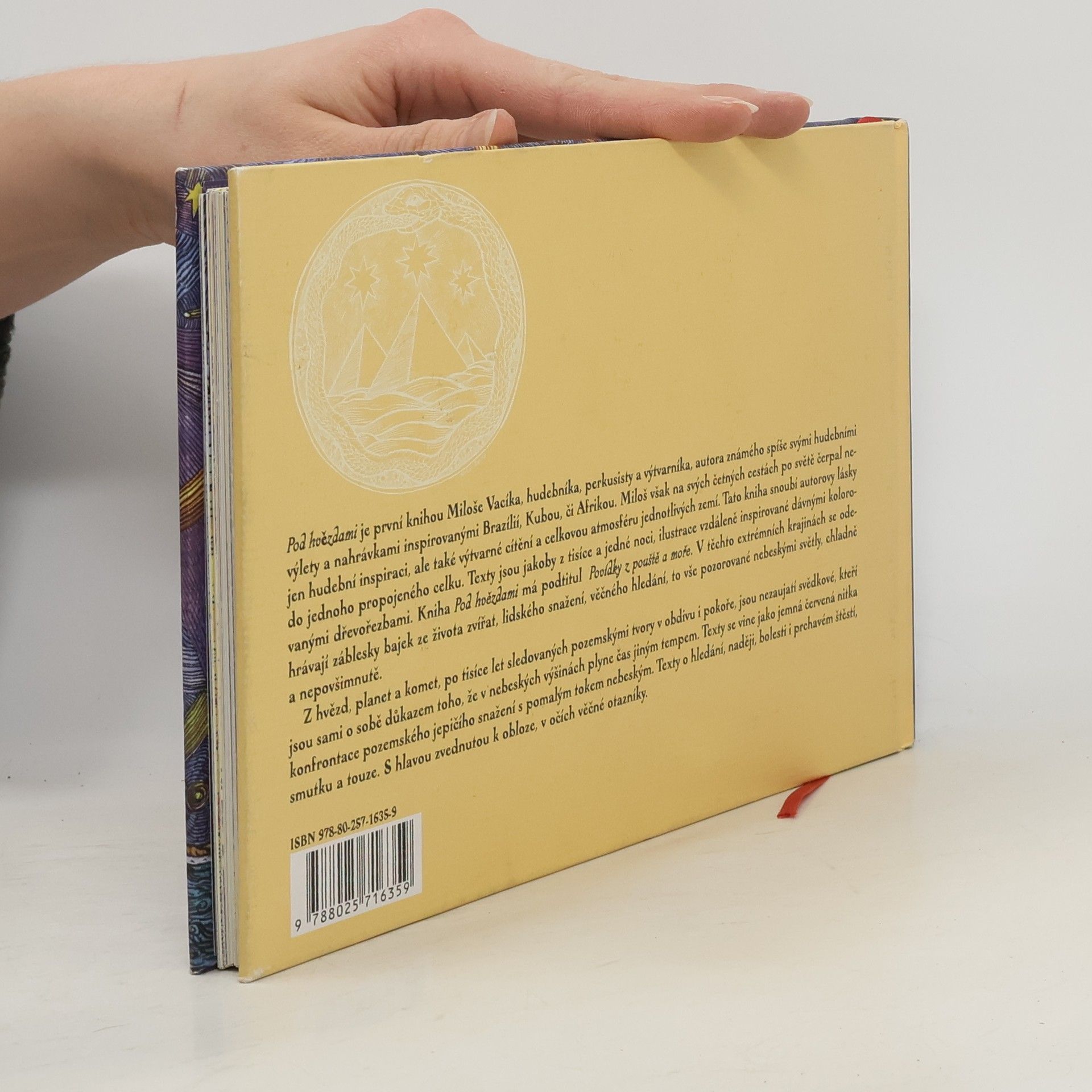 Pod hvězdami je první knihou Miloše Vacíka, hudebníka, perkusisty a výtvarníka, autora známého nahrávkami inspirovanými jeho cestami po Brazílií, Kubě či Africe. Miloš na svých cestách po světě čerpal také výtvarné cítění a celkovou atmosféru jednotlivých zemí. Tato kniha snoubí autorovy lásky do jednoho celku. Texty jsou jakoby z tisíce a jedné noci, ilustrace vzdáleně inspirované dávnými kolorovanými dřevořezbami. Kniha Pod hvězdami má podtitul Povídky z pouště a moře. V těchto extrémních krajinách se odehrávají záblesky bajek života zvířat, lidského snažení, věčného hledání, to vše pozorované nebeskými světly, chladně a nepovšimnutě.