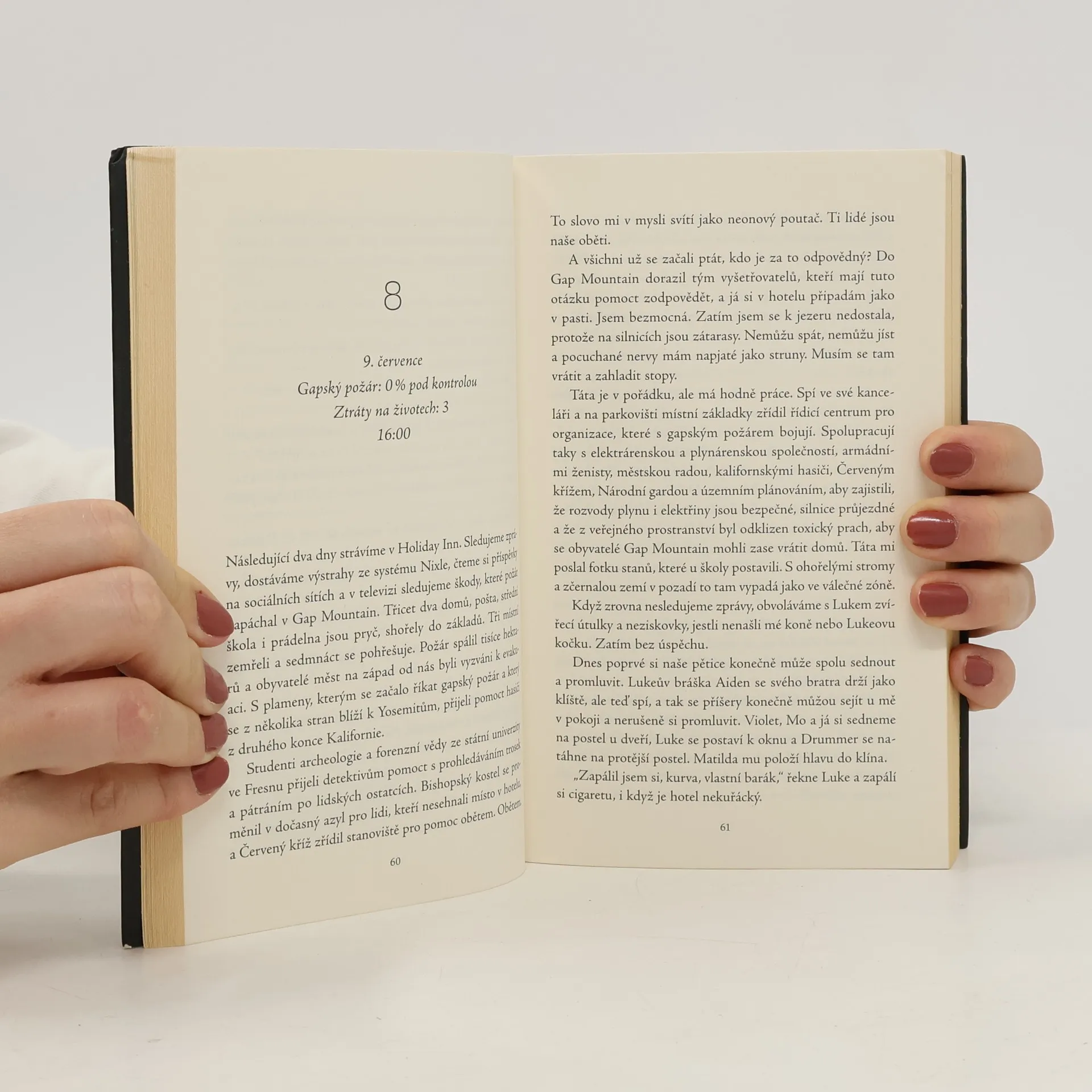 Osmnáctiletá Hannah – dcera místního šerifa, jejímž snem je stát se agentkou FBI – si užívá poslední léto s kamarády před odjezdem na vysokou. Pětice vyráží k jezeru nedaleko jejich rodného města, kde však omylem založí požár, který se začne nekontrolovatelně šířit krajinou k jejich domovu. Protože i neúmyslné založení požáru je trestným činem, rozhodne se skupinka všechno zamlčet. Ničivý požár se však nedaří uhasit, a zatímco plameny směřují k Yosemitskému národnímu parku, mezi pěticí se šíří panika. Začíná nervy drásající boj o udržení tajemství, jak před federální policií, tak i mezi samotnými aktéry. Protože jestli lidé něco nesnáší, tak lháře... Pro fanoušky Karen M. McManus and E. Lockhart. Doporučený věk 15+