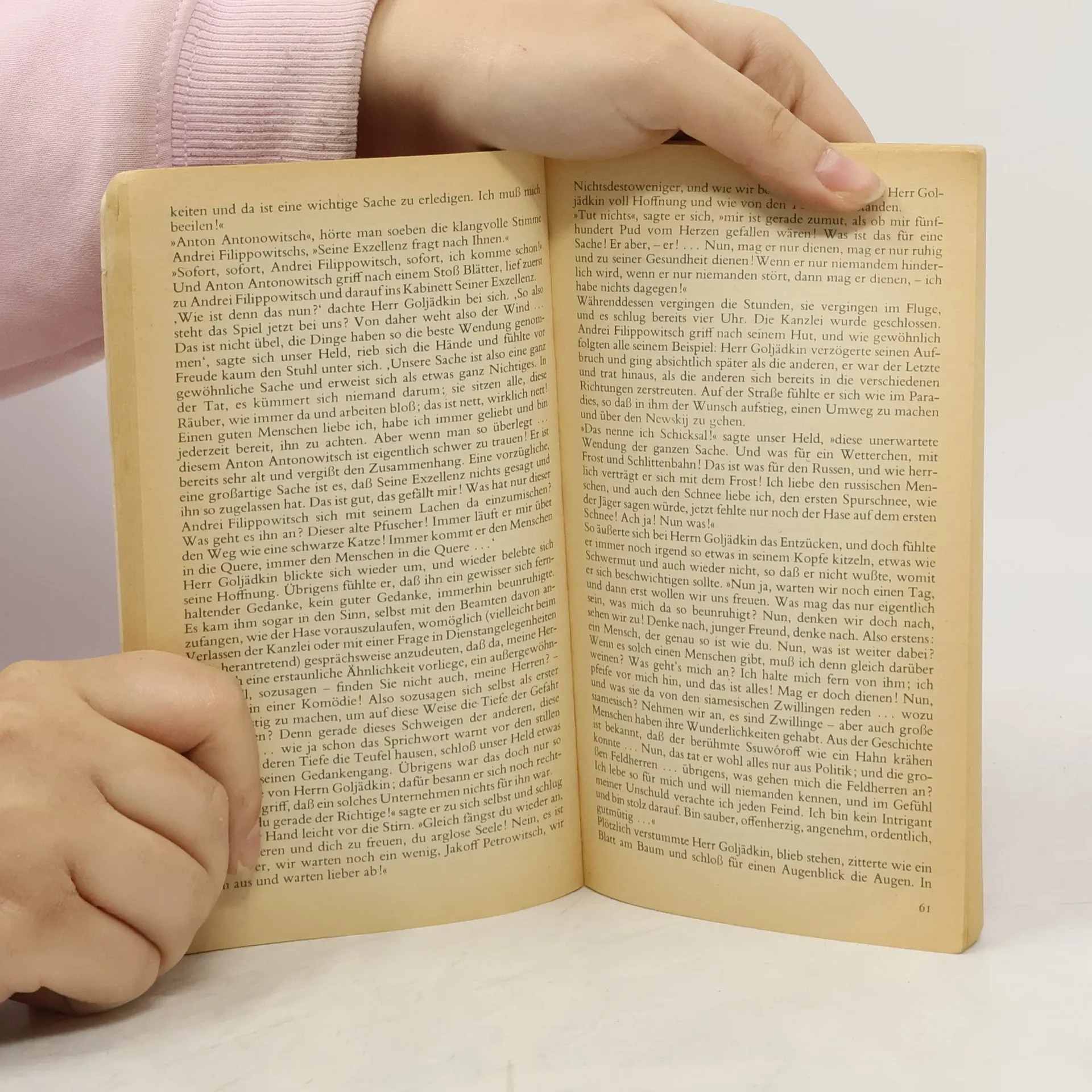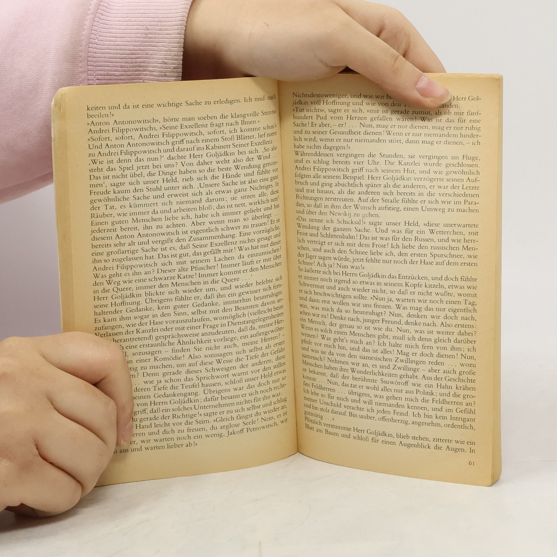 'Ich bin nicht ich, sondern jemand ganz anderer, der mir verblüffend ähnlich ist' - zu dieser verwirrenden Einsicht kommt der schüchterne Kanzleibeamte Goljadkin, als er in einer unheilvollen Nacht in Petersburg seinem Doppelgänger gegenübersteht. Nicht nur auf der Straße wird Goljadkin von seinem unheimlichen Double auf Schritt und Tritt verfolgt, auch am Arbeitsplatz, ja sogar in der eigenen Wohnung ist er vor dem ungebetenen Gast nicht mehr sicher, der ihn bald aus allen Lebensbezirken zu verdrängen sucht.