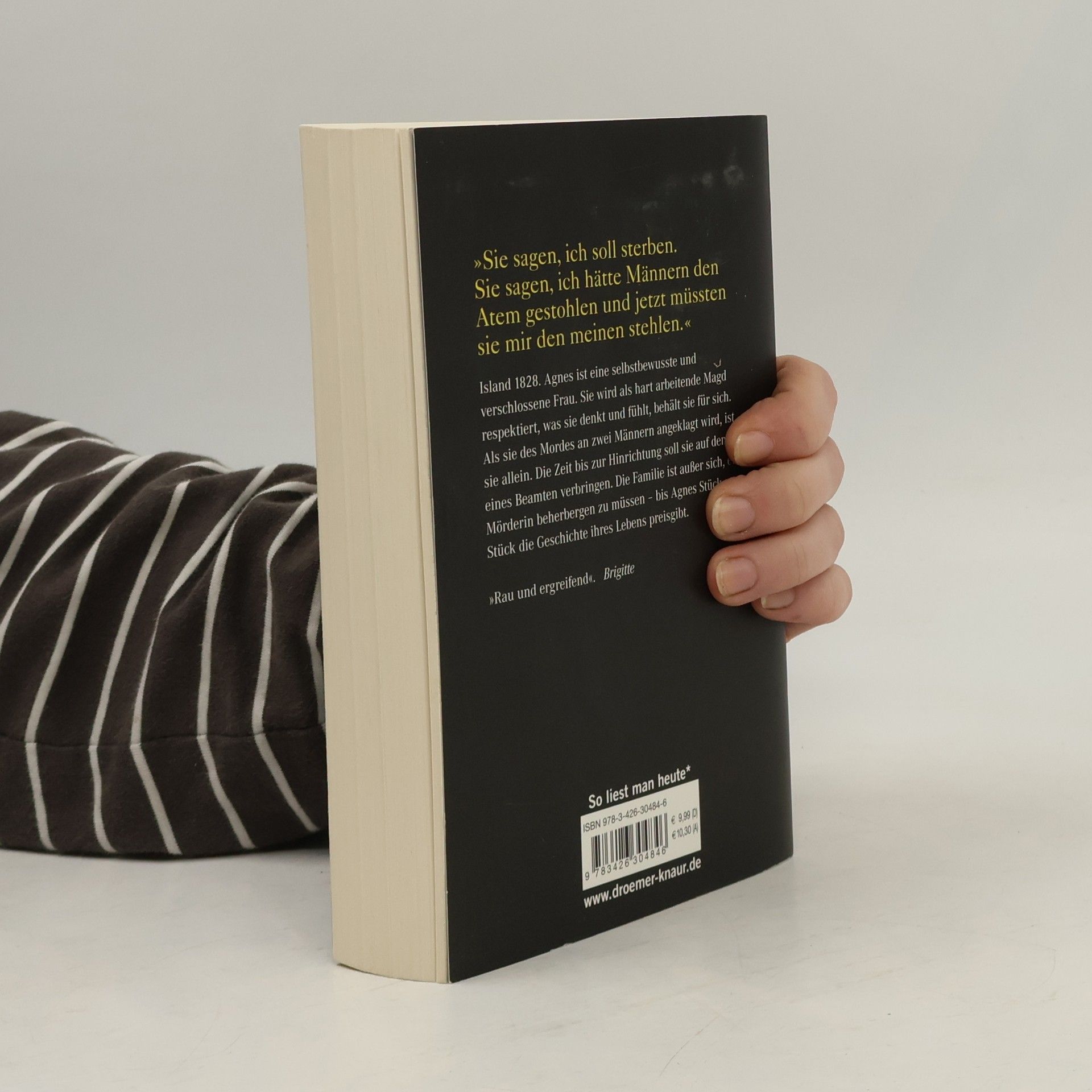 „Sie sagen, ich soll sterben. Sie sagen, ich hätte Männern den Atem gestohlen und jetzt müssten sie mir den meinen stehlen.“ Island, 1828. Agnes, eine selbstbewusste und verschlossene Frau, wird als respektierte Magd angesehen, doch ihre Gedanken und Gefühle behält sie für sich. Als sie des Mordes an zwei Männern beschuldigt wird, steht sie allein da. Bis zur Hinrichtung soll sie im Haus eines Beamten leben, was die Familie in Aufruhr versetzt. Sie sind entsetzt, eine Mörderin beherbergen zu müssen, doch Agnes beginnt, Stück für Stück ihre Lebensgeschichte zu erzählen. Die Tat war brutal: zwei Männer wurden erschlagen, erstochen und verbrannt. Agnes und ein junges Paar werden zum Tode verurteilt, und der Landrat will an Agnes ein Exempel statuieren. Trotz des Urteils und der Ablehnung der Familie nimmt Agnes es scheinbar gelassen hin. Bei der Arbeit findet sie manchmal Trost und kann ihr Schicksal für einen Moment vergessen. Die raue Landschaft und die ärmliche Unterkunft sind ihr vertraut, bis sie einen Mann trifft und sich nach langer Zeit ihre Sehnsucht nach Liebe eingesteht. Der Schmerz über seinen Tod, für den sie verantwortlich gemacht wird, überlagert alles, auch die Angst vor ihrem eigenen Ende. Schließlich öffnet sie sich einem jungen Vikar, der sie auf den Weg der Reue führen soll. Während ihrer Gespräche ahnt vor allem die Hausherrin Margrét, dass die offizielle Wahrheit über Agnes möglicherweise falsch ist.