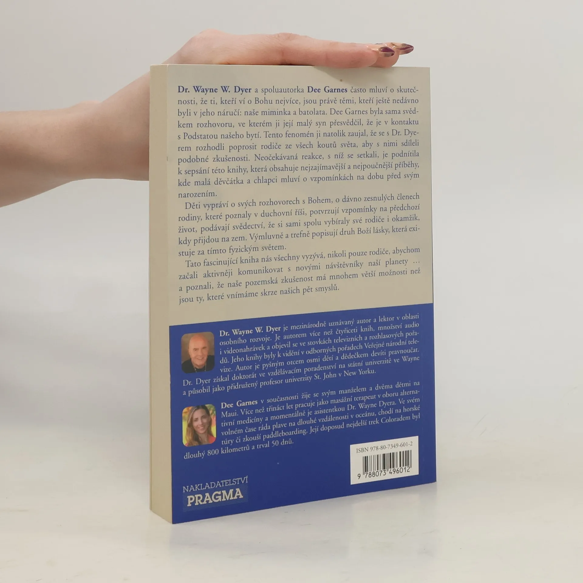 Autoři Wayne Dyer a Dee Garnes často mluví o skutečnosti, že ti, kteří ví o Bohu nejvíce, jsou právě těmi, kteří ještě nedávno byli v jeho náručí: naše miminka a batolata. Děti z celého světa v této knize vypráví o svých rozhovorech s Bohem, o zesnulých členech rodiny, které poznaly v duchovní říši, podávají svědectví, že si sami spolu vybíraly své rodiče i okamžik, kdy přijdou na zem. Výmluvně a trefně popisují druh Boží lásky, která existuje za tímto fyzickým světem. Tato fascinující kniha nás všechny vyzývá, nikoli pouze rodiče, abychom začali aktivněji komunikovat s novými návštěvníky naší planety a poznali, že naše pozemská zkušenost má mnohem větší možnosti než jsou ty, které vnímáme skrze našich pět smyslů.