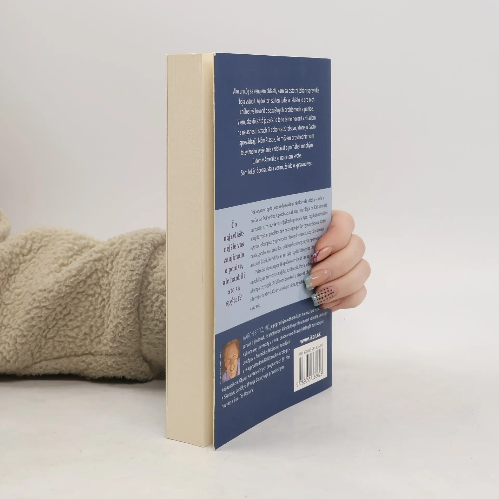 Päťkrokový plán pre zdravý penis. Ako urológ sa venujem oblasti, kam sa ostatní lekári spravidla boja vstúpiť. Aj doktori sú len ľudia a takisto je pre nich chúlostivé hovoriť o sexuálnych problémoch a penise. Viem, aké dôležité je začať o tejto téme hovoriť vzhľadom na nejasnosti, strach či dokonca zúfalstvo, ktoré ju často sprevádzajú. Mám šťastie, že môžem prostredníctvom televízneho vysielania vzdelávať a pomáhať mnohým ľuďom v Amerike aj na celom svete. Som lekár-špecialista a verím, že ide o správnu vec. Čo najzvláštnejšie vás zaujímalo o penise, ale hanbili ste sa spýtať? Doktor Aaron Spitz pozná odpovede na všetky vaše otázky a vie aj oveľa viac. Doktor Spitz, pôsobiaci na katedre urológie na Kalifornskej univerzite v Irvine, vás vo svoje knihe prevedie tými najchúlostivejšími a najcitlivejšími problémami s mužským pohlavným orgánom. Kniha o penise je komplexný sprievodca rôznymi témami, ako sú anatómia penisu, problémy s erekciou, pohlavné choroby, mýty z pornografie a mnohé ďalšie. Nevyhýba sa ani sa tým najdelikátnejším otázkam. Príručka zároveň ponúka päťkrokový plán pre zdravý penis a nechýbajú ani cvičenia na jeho posilnenie. Penis je fascinujúci a komplexný orgán. Je kľúčom k rozkoši a zároveň oknom celkového zdravotného stavu. Čím viac o ňom viete, tým budete šťastnejší a zdravší.