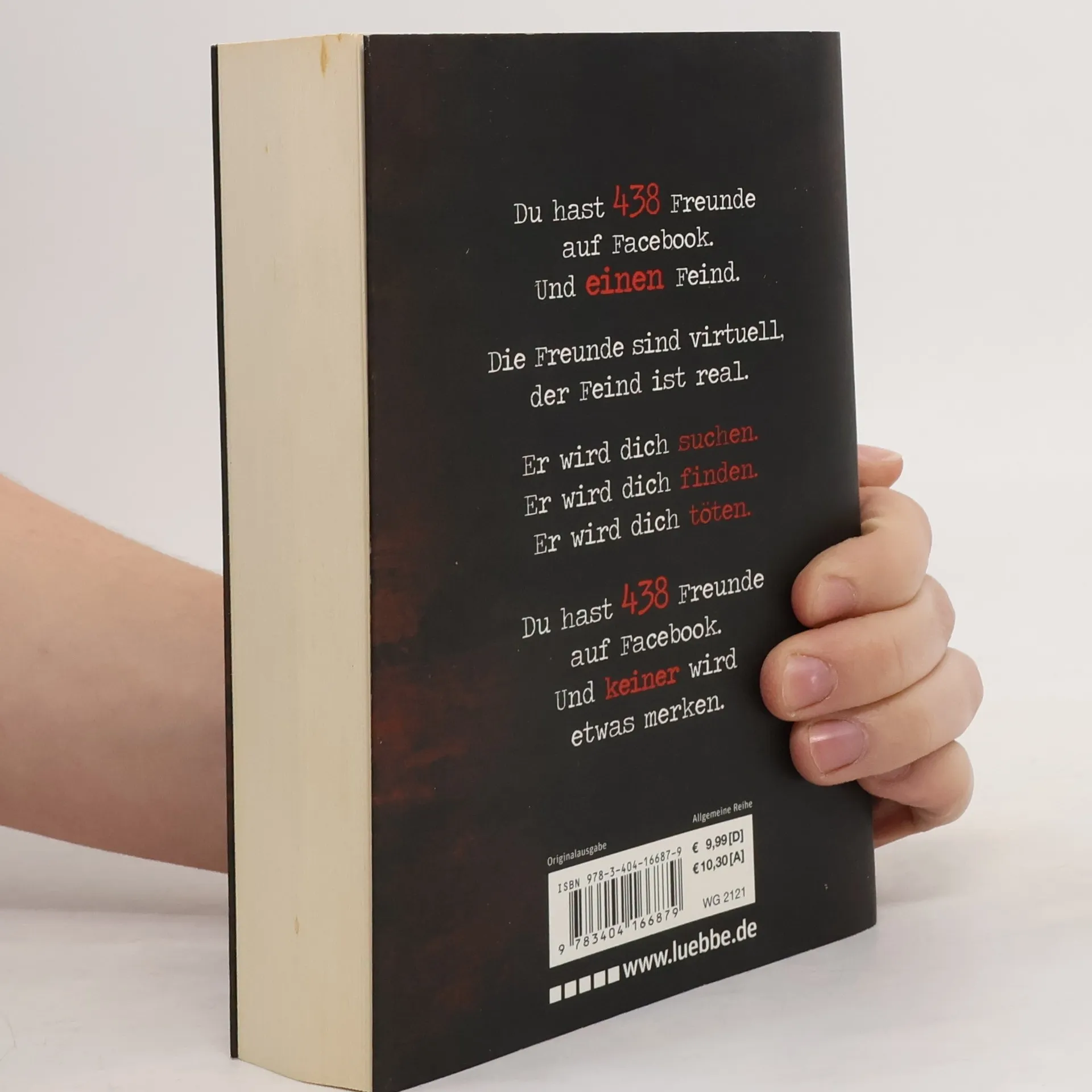 Du hast 438 Freunde auf Facebook.Und einen Feind. Die Freunde sind virtuell,der Feind ist real. Er wird Dich suchen.Er wird Dich finden.Er wird Dich töten. Du hast 438 Freunde auf Facebook. Und keiner wird etwas merken. Ein Killer, der wie ein Computervirus agiert: unsichtbar und allgegenwärtig. Er nennt sich der Namenlose, und seine Taten versetzen ganz Berlin in Angst und Schrecken. Hauptkommissarin Clara Vidalis und ihr Team sind in der Abteilung für Pathopsychologie ohnehin schon für die schweren Fälle zuständig, aber die Vorgehensweise dieses Verbrechers raubt selbst ihnen den Atem. Perfide und genial, lenkt er die Ermittler stets auf die falsche Fährte. Und erst allmählich begreift die Kommissarin, dass der Namenlose sein grausames Spiel nicht mit der Polizei spielen will, sondern nur mit einem Menschen: mit ihr, Clara Vidalis. Während die Ermittler noch verzweifelt versuchen, die Identität des Killers aufzudecken, startet der Medienmogul Albert Torino eine neue Casting-Show. Und es gibt jemanden, der diese Show für seine eigenen, brutalen Zwecke nutzen wird: der Namenlose.