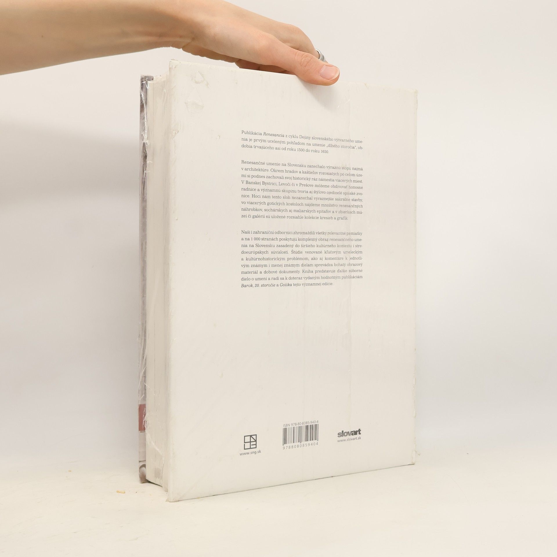 Obsiahla publikácia Renesancia z cyklu Dejiny slovenského výtvarného umenia je prvým uceleným pohľadom na umenie „dlhého storočia“, od konca 15. do polovice 17. storočia. Renesančné umenie na Slovensku zanechalo výraznú stopu v architektúre. Námestia viacerých miest, napríklad Levoče či Prešova si podnes zachovali svoj historický ráz, významnú skupinu tvoria radnice a spišské zvonice, rovnako ako po celom Slovensku „rozosiate“ renesančné kaštiele. V mnohých gotických kostoloch sa dochovalo množstvo renesančných náhrobkov, sochárskych i maliarskych epitafov a poskromne sa v kostoloch objavujú už aj manieristické oltáre. Domáci i zahraniční autori zhromaždili v publikácii všetky relevantné pamiatky tohto obdobia, analyzujú známe, menej známe i neznáme diela, podávajú vyčerpávajúci a komplexný obraz v širšom kultúrnom kontexte a stredoeurópskych súvislostiach. Kniha Renesancia je určená širokej kultúrnej obci, jej bohatú textovú a obrazovú časť (takmer 800 reprodukcií) dopĺňa poznámkový aparát, bibliografia, tabuľky, mapy a registre. Po predchádzajúcich publikáciách – Barok, 20. storočie a Gotika – je Renesancia ďalším, v poradí už štvrtým zväzkom obsiahleho cyklu Dejiny slovenského výtvarného umenia, ktoré pripravuje Slovenská národná galéria v spolupráci s Vydavateľstvom SLOVART.