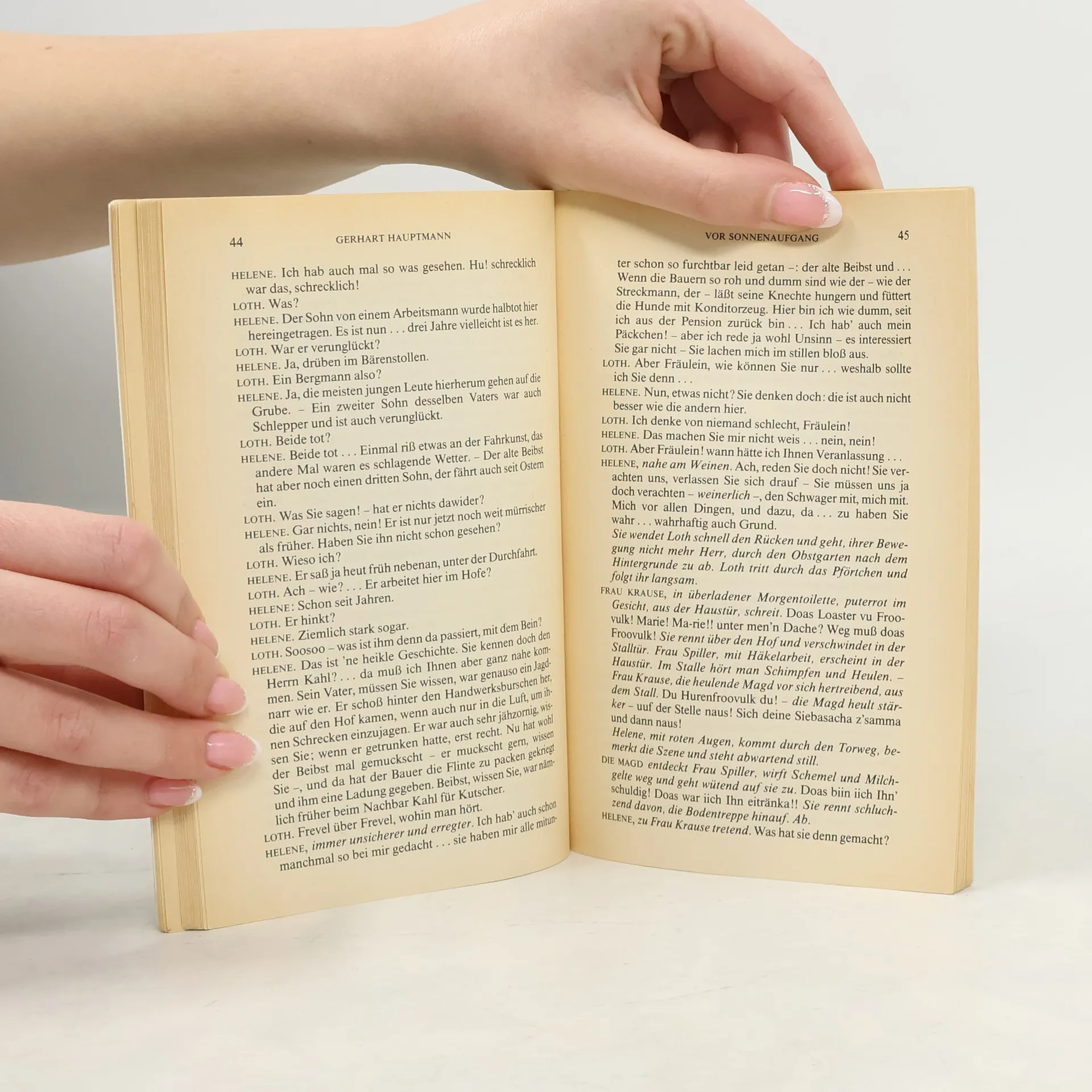 Die Uraufführung von Vor Sonnenaufgang 1889 mündete in einen Skandal und bedeutete den Durchbruch der naturalistischen Bewegung. Vor dem düsteren Hintergrund der Kohlengruben und ihrer Arbeiter scheint sich eine Familientragödie abzuspielen. Doch zur Tragödie im klassischen Sinn kommt es nicht mehr, da die Figuren zu eigenständigem Handeln nicht imstande sind.