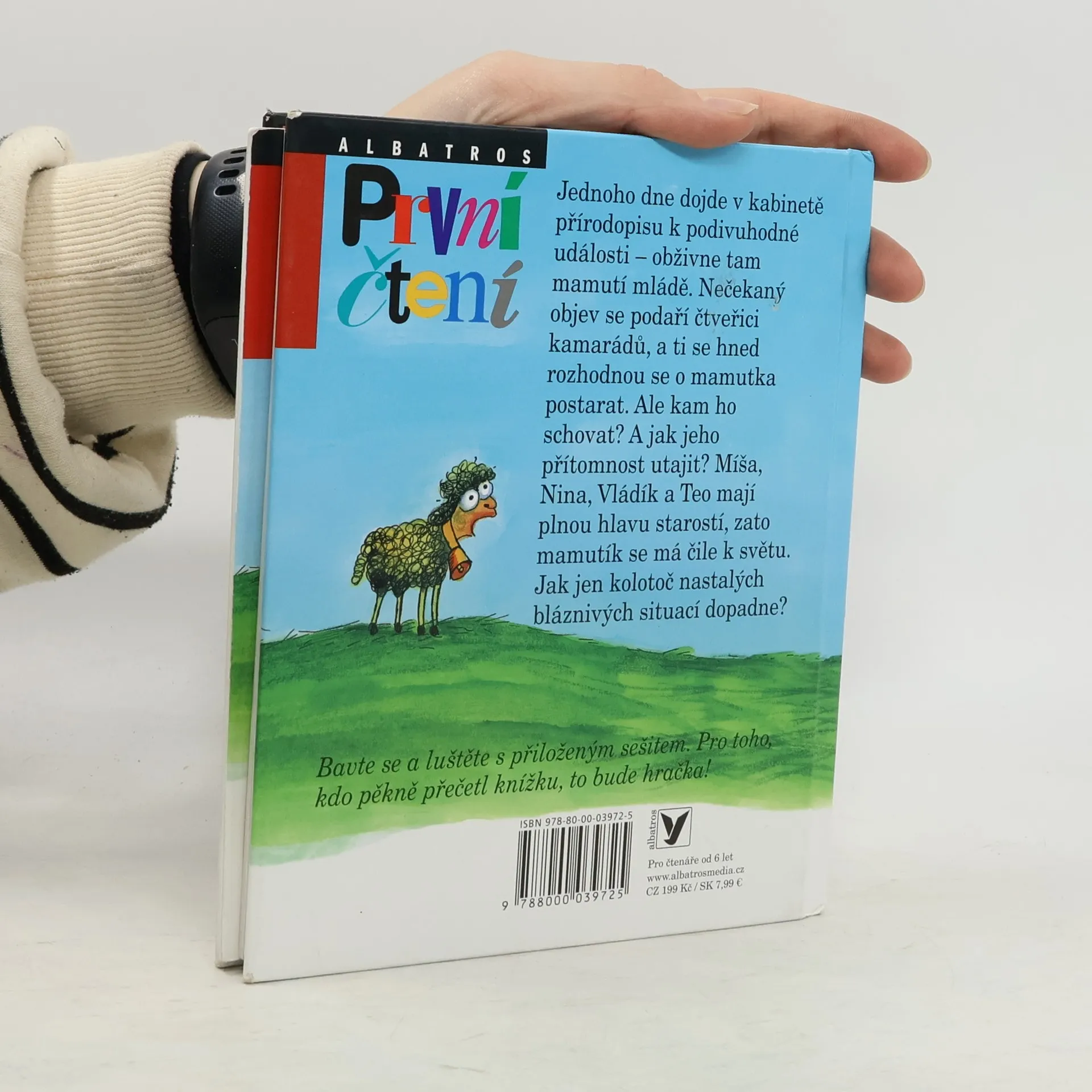 Jednoho dne dojde v kabinetě přírodopisu k podivuhodné události – obživne tam mamutí mládě. Nečekaný objev se podaří čtveřici kamarádů, a ti se hned rozhodnou se o mamutka postarat. Ale kam ho schovat? A jak jeho přítomnost utajit? Míša, Nina, Vládík a Teo mají plnou hlavu starostí, zato mamutík se má čile k světu. Jak jen kolotoč nastalých bláznivých situací dopadne? Bavte se a luštěte s přiloženým pracovním sešitem. Pro toho, kdo pěkně přečetl knížku, to bude hračka!